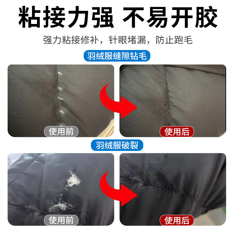 羽绒服修补胶水防钻毛神器破洞针眼无痕修补液布料布艺专用衣物粘接冲锋衣压胶修复粘logo补丁拉链软性防水胶