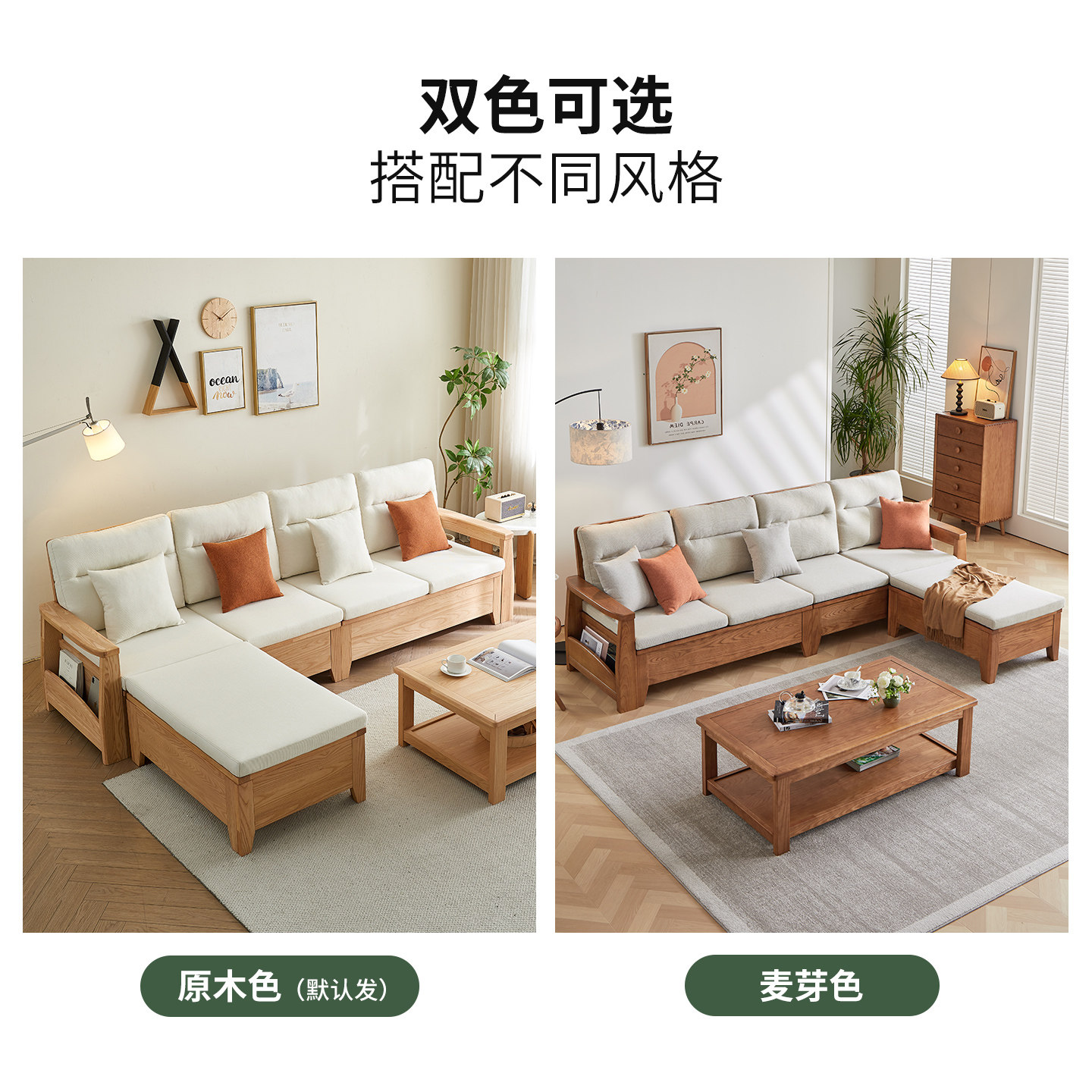 实木沙发新中式橡木真皮沙发北欧客厅小户型家具原木直排布艺沙发