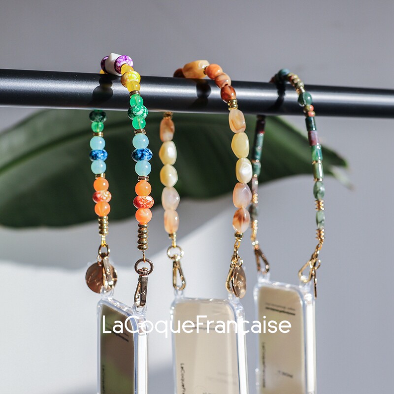 法国LaCoqueFrancaise明星款高级感彩色串珠编织可斜挎包腕手机链