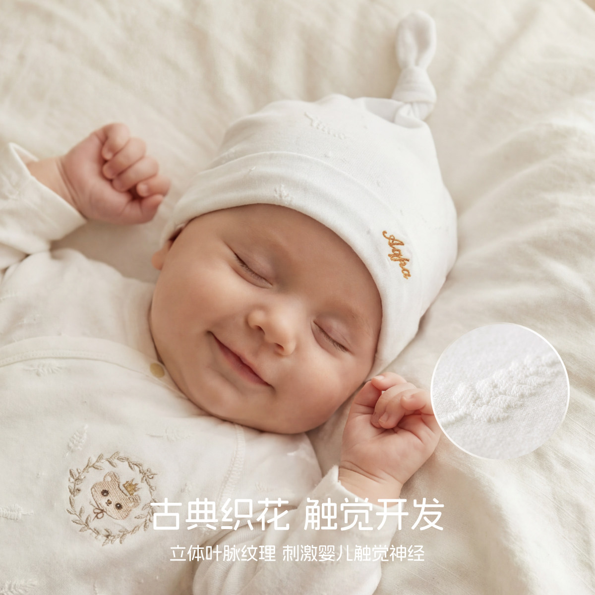 十月结晶粒粒阳光婴儿帽子a类0到3个月新生小月龄宝宝护囟门胎帽