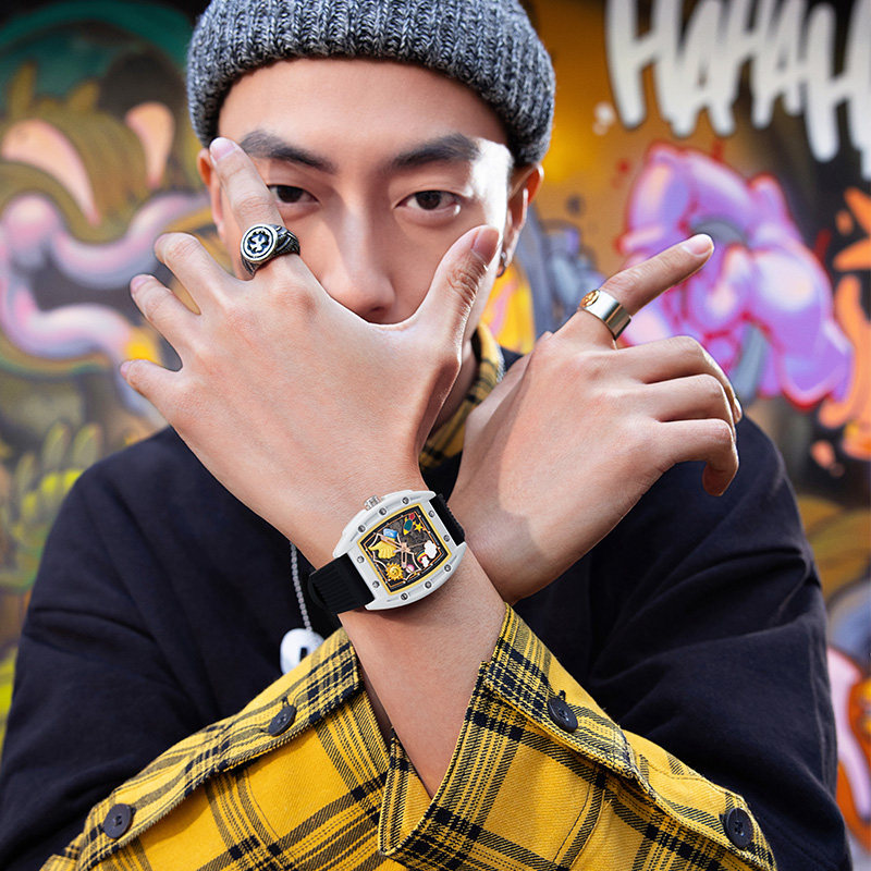 马克华菲男士手表男款镂空全自动机械腕表个性青少年学生男表酒桶