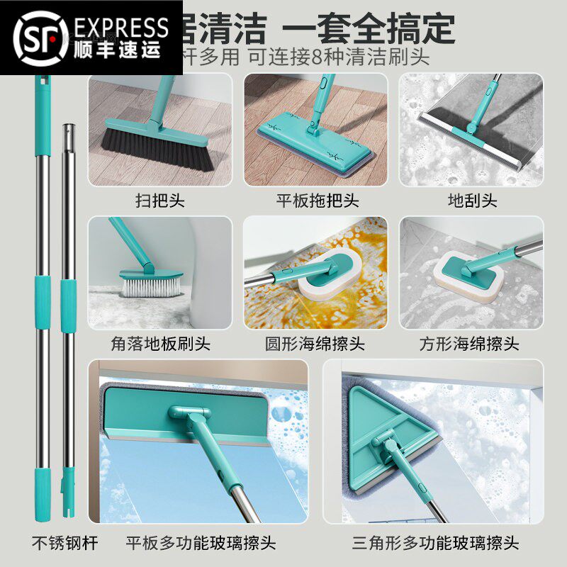 擦玻璃窗户神器家用地刮刷子拖把扫把替换头一杆多用清洁工具套装