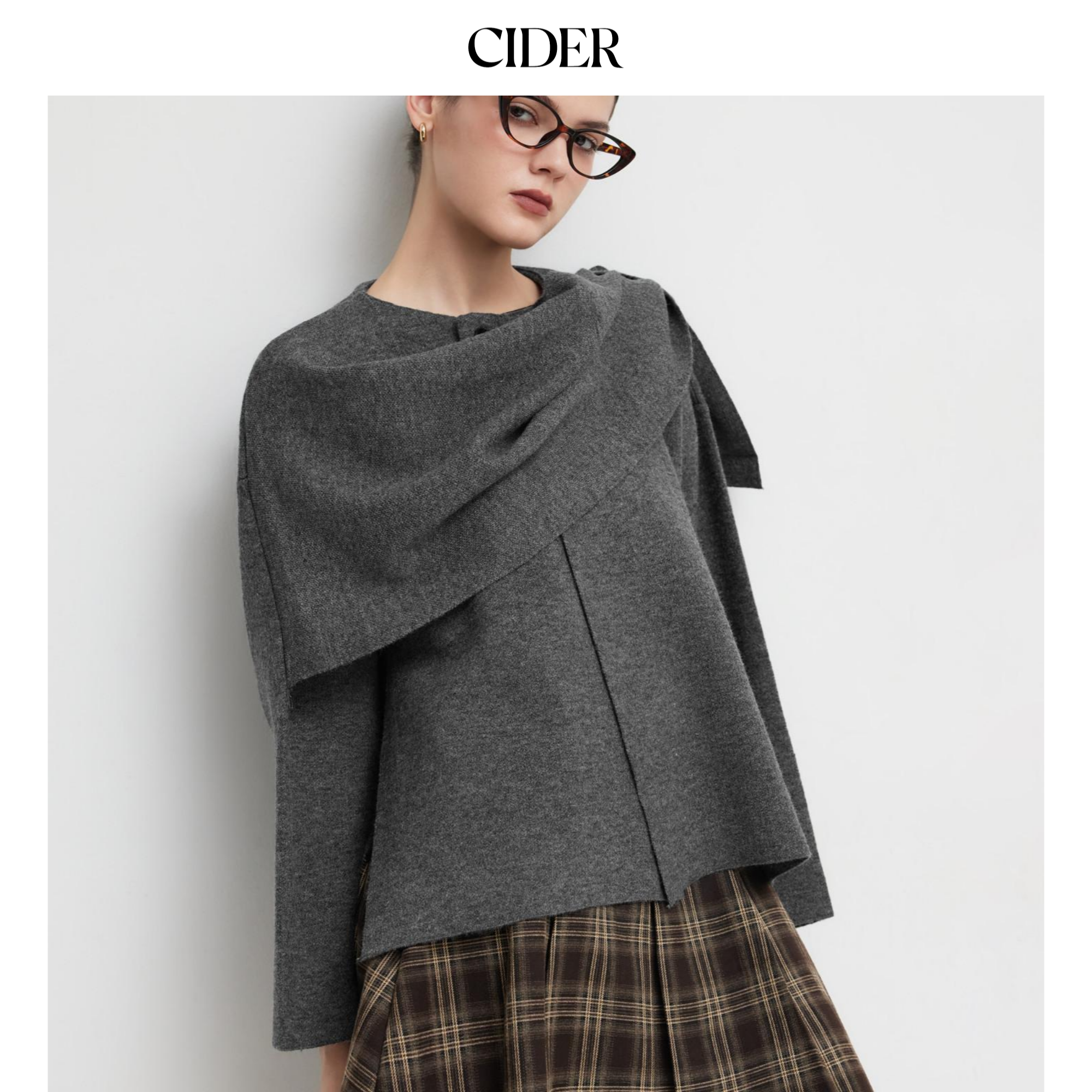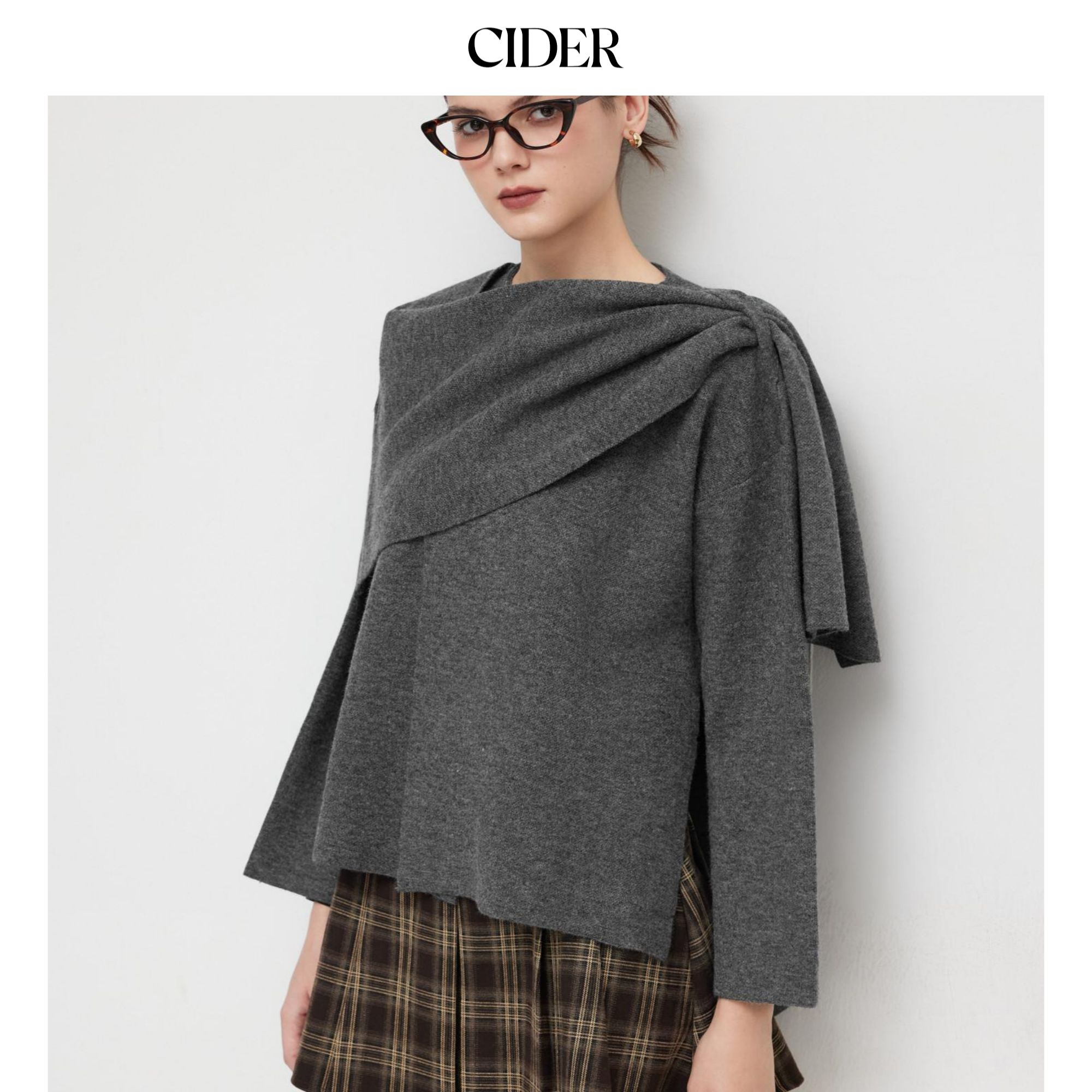 CIDER 秋冬新品女装针织不对称领口开叉开衫113982979
