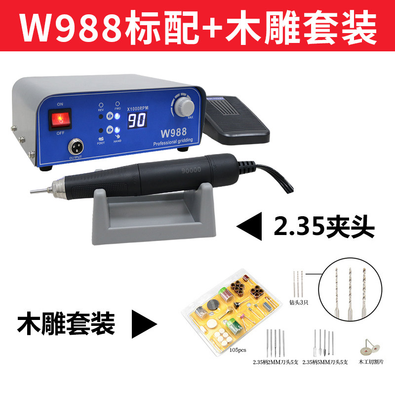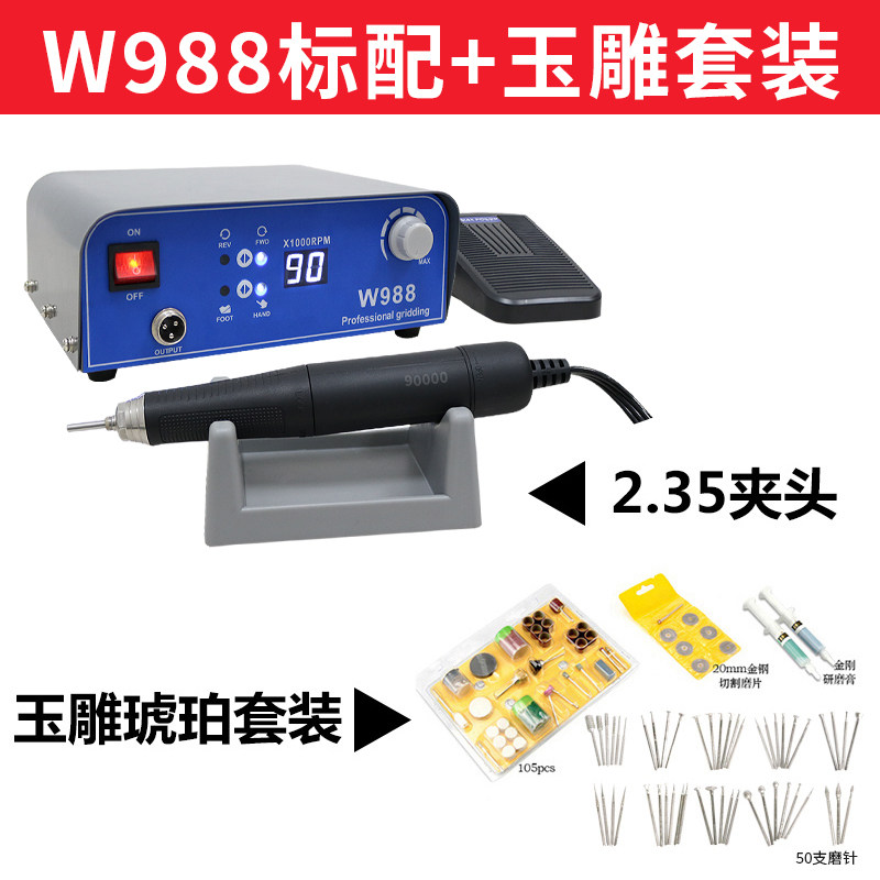全力道W988无刷牙机雕刻机小型玉石翡翠打磨机木雕核雕玉雕电子机