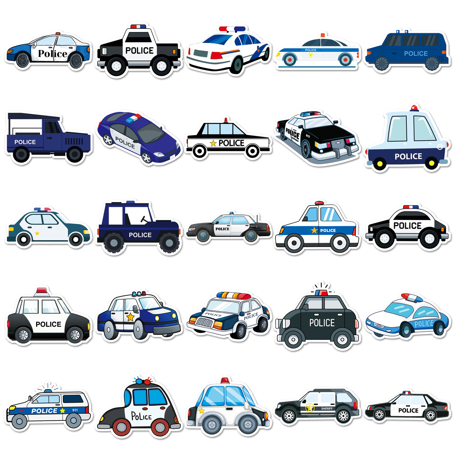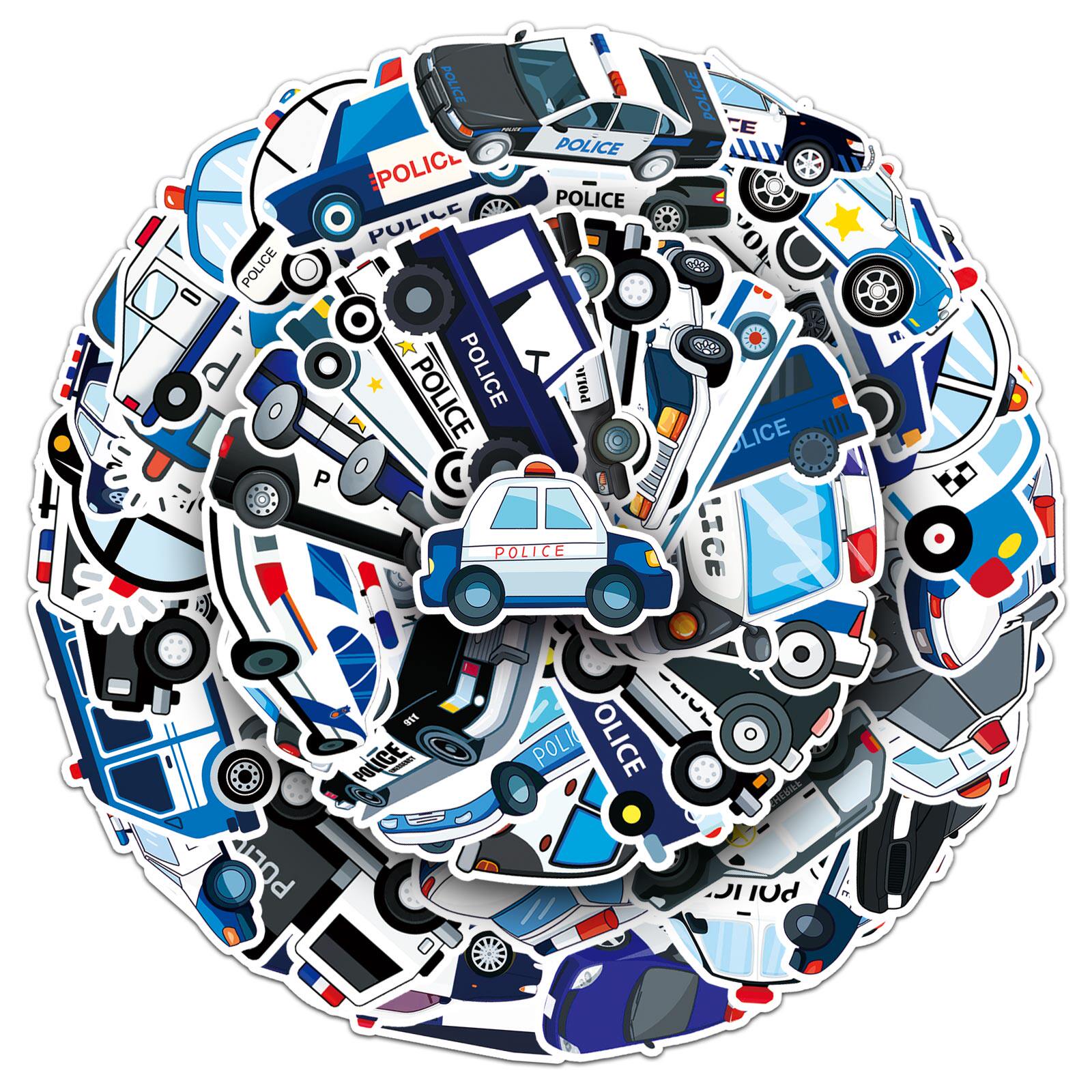 100张警车卡通炫酷贴纸可爱自行车电脑笔记相框头盔奖励儿童装饰汽车系列交通工具涂鸦个性创意防水潮流贴画