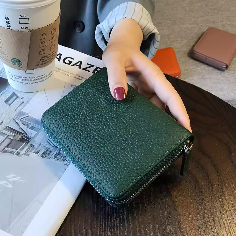 2025新款卡包多卡位放卡的高档女小巧卡夹证件套真皮风琴绿色零钱