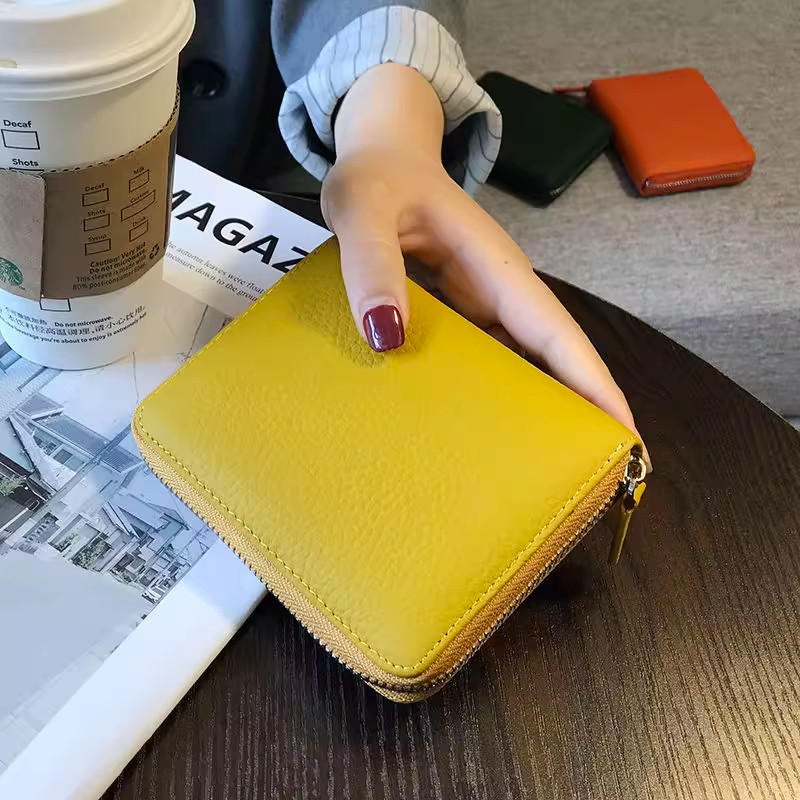 稻草人卡包女士新款证件女式牛皮小巧真皮拉链钱夹小众银行卡钱包