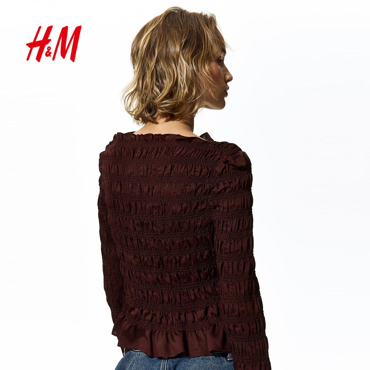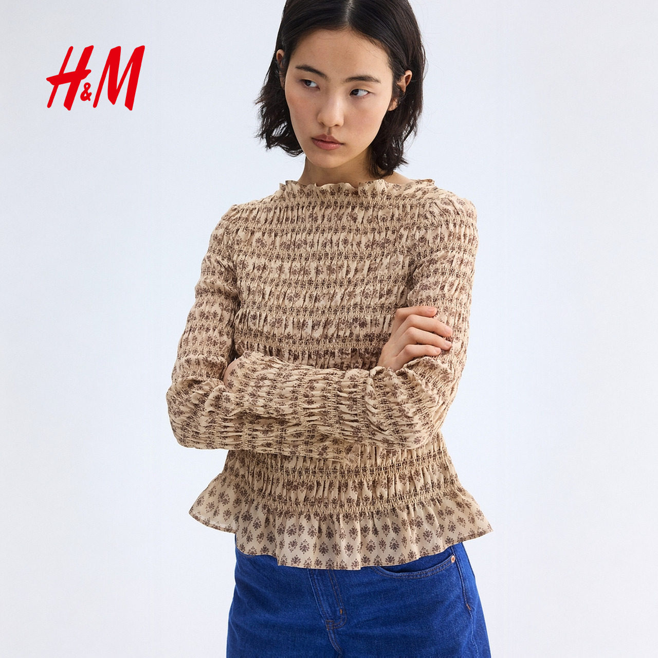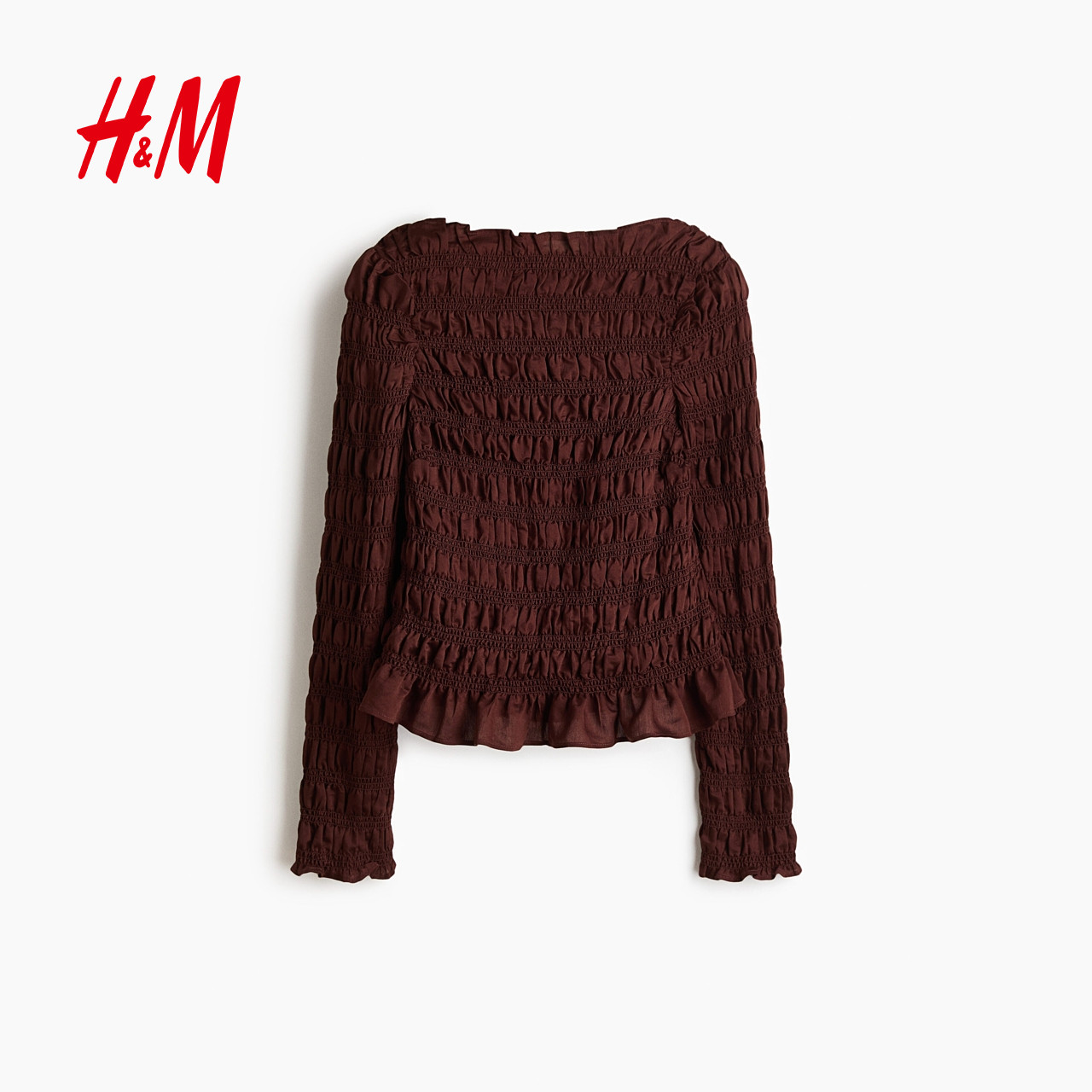 HM女装衬衫2026春季新款浅春系出游抽褶缩褶浪漫繁复衬衫1317901