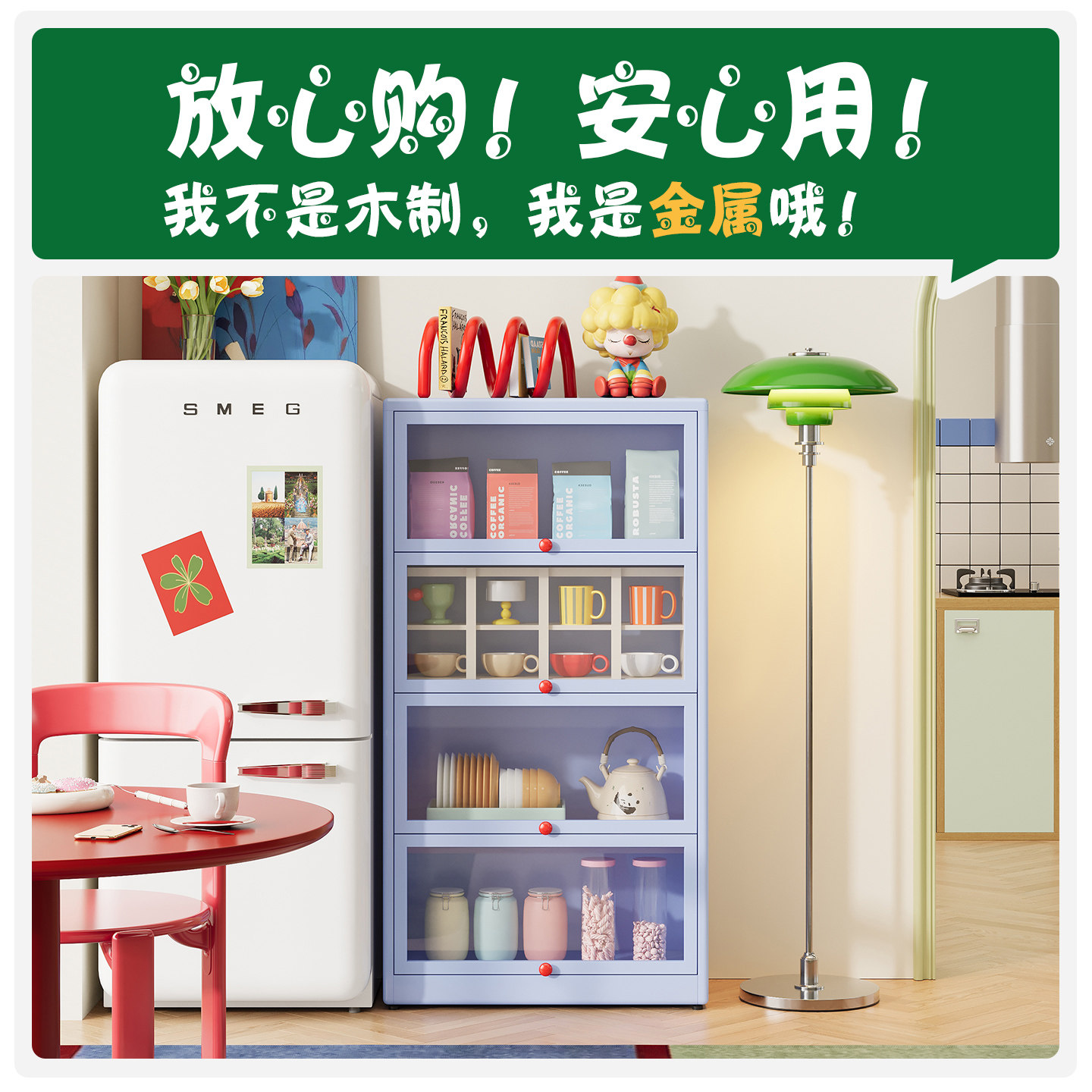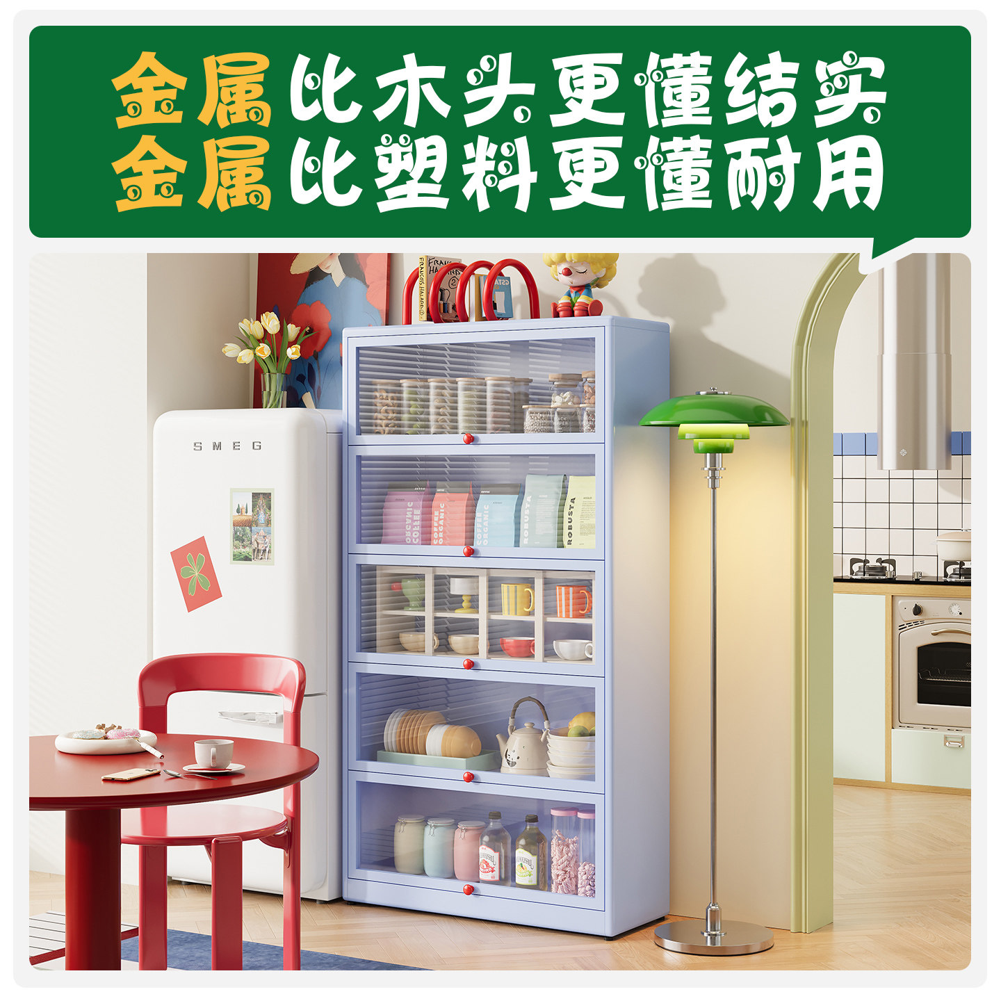 2026新款钢制置物餐边柜家用落地带门可防尘防潮餐厅收纳柜储物柜