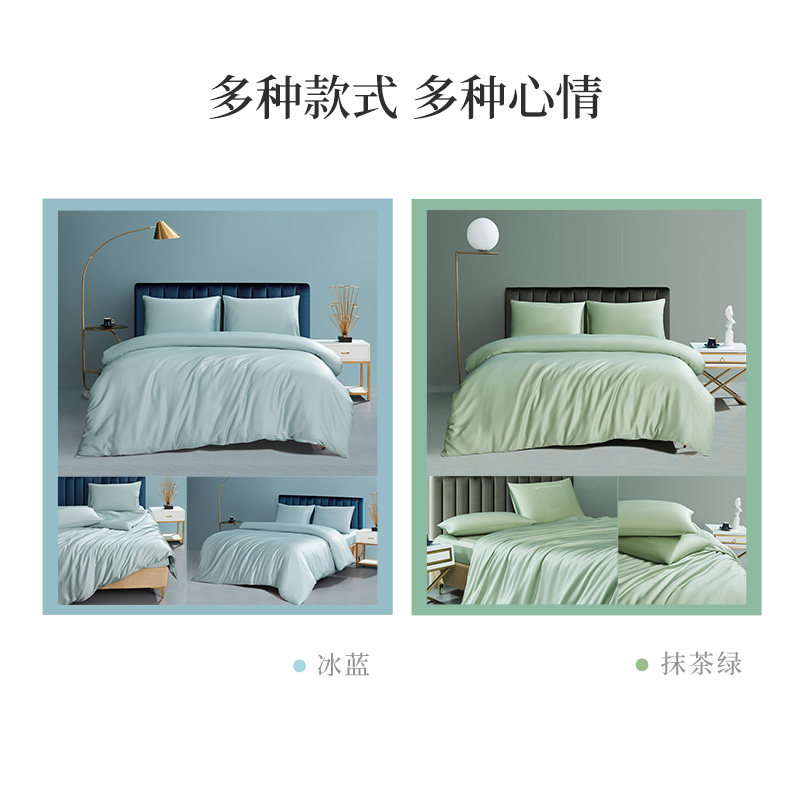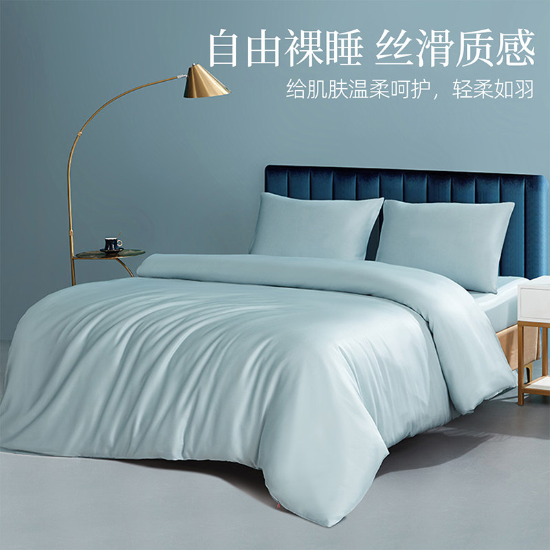 梦洁家纺60支三四件套莱赛尔纯色简约夏季被套床单高端床上用品