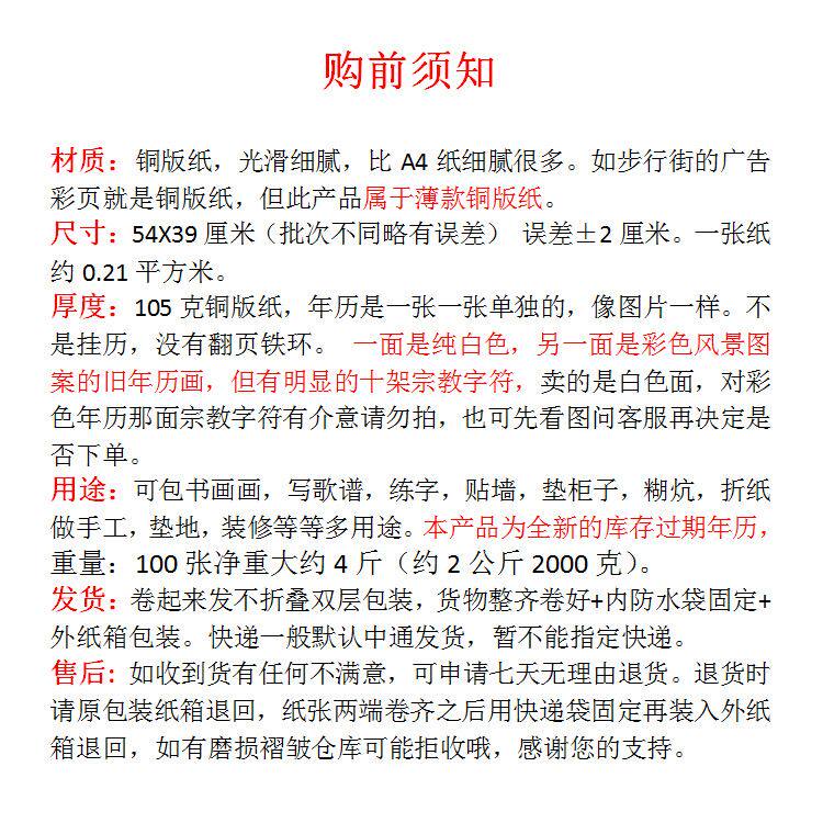 往年过期旧年历纸大号白纸亮光铜版纸可包书本画画贴墙壁装修垫铺