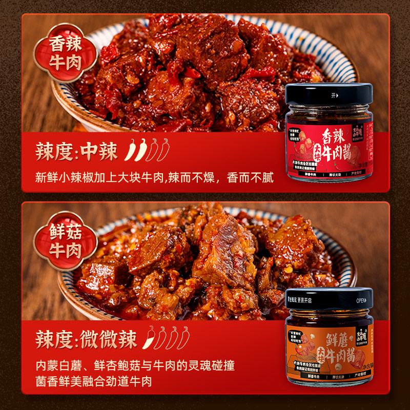大块牛肉酱拌面酱香辣酱拌饭神器罐装鲜蘑下饭佐餐酱料
