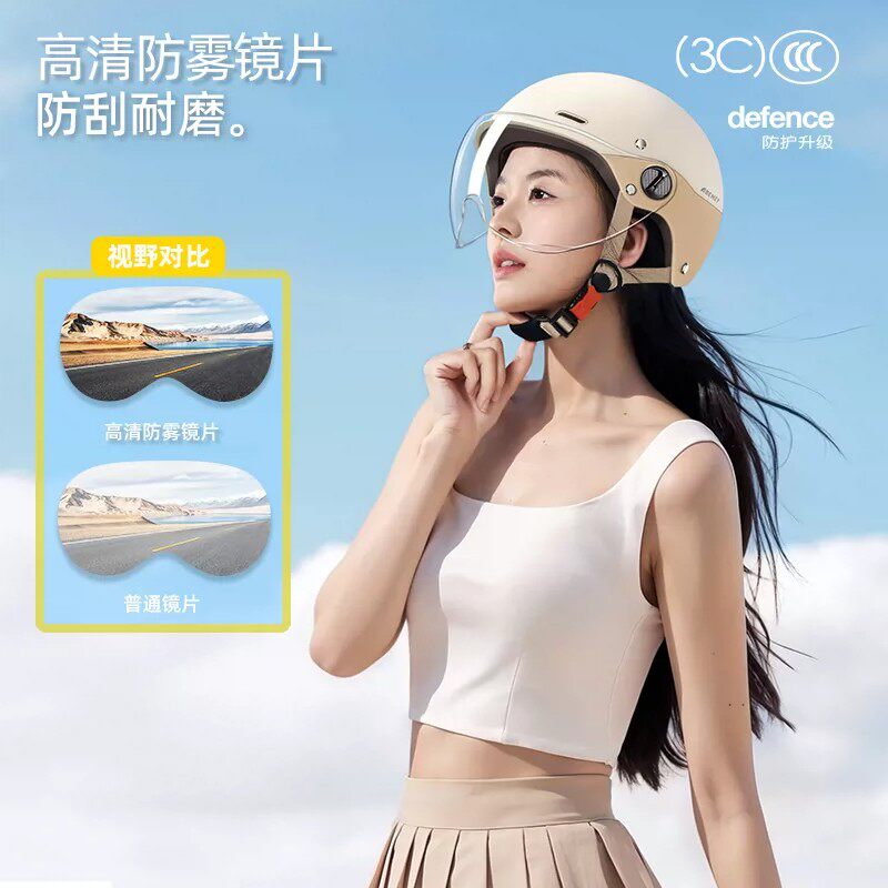 3c认证电动车头盔女士电瓶摩托半盔男四季通用骑行冬季保暖安全帽