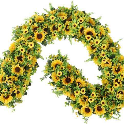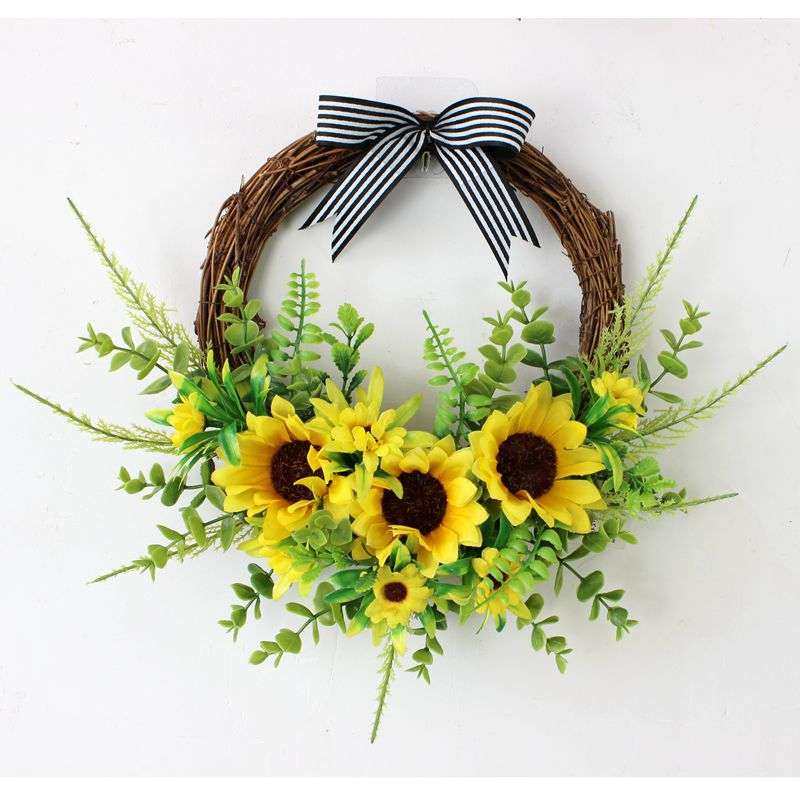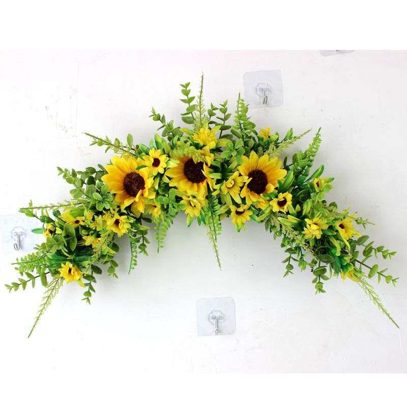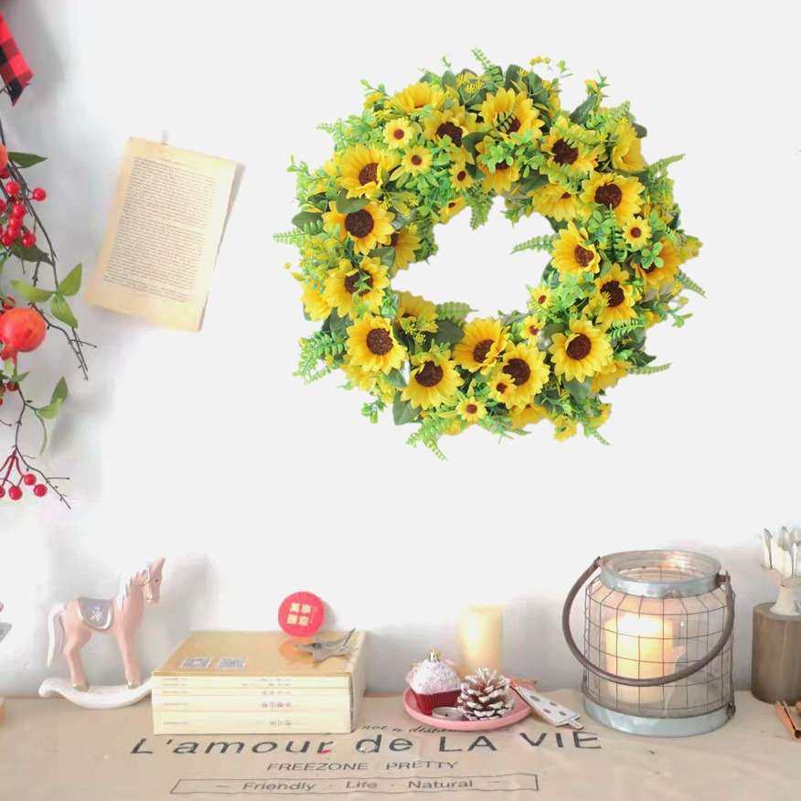 尤加利向日葵仿真花挂墙假花客厅门楣墙壁家居门上花环春天装饰品
