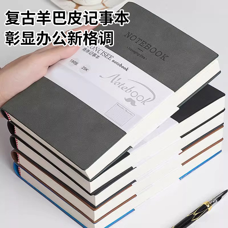 a4大号简约自带笔插位羊巴皮商务办公笔记本本子加厚b5商务高档高颜值精致高级工作办公考研学习笔记本子定制