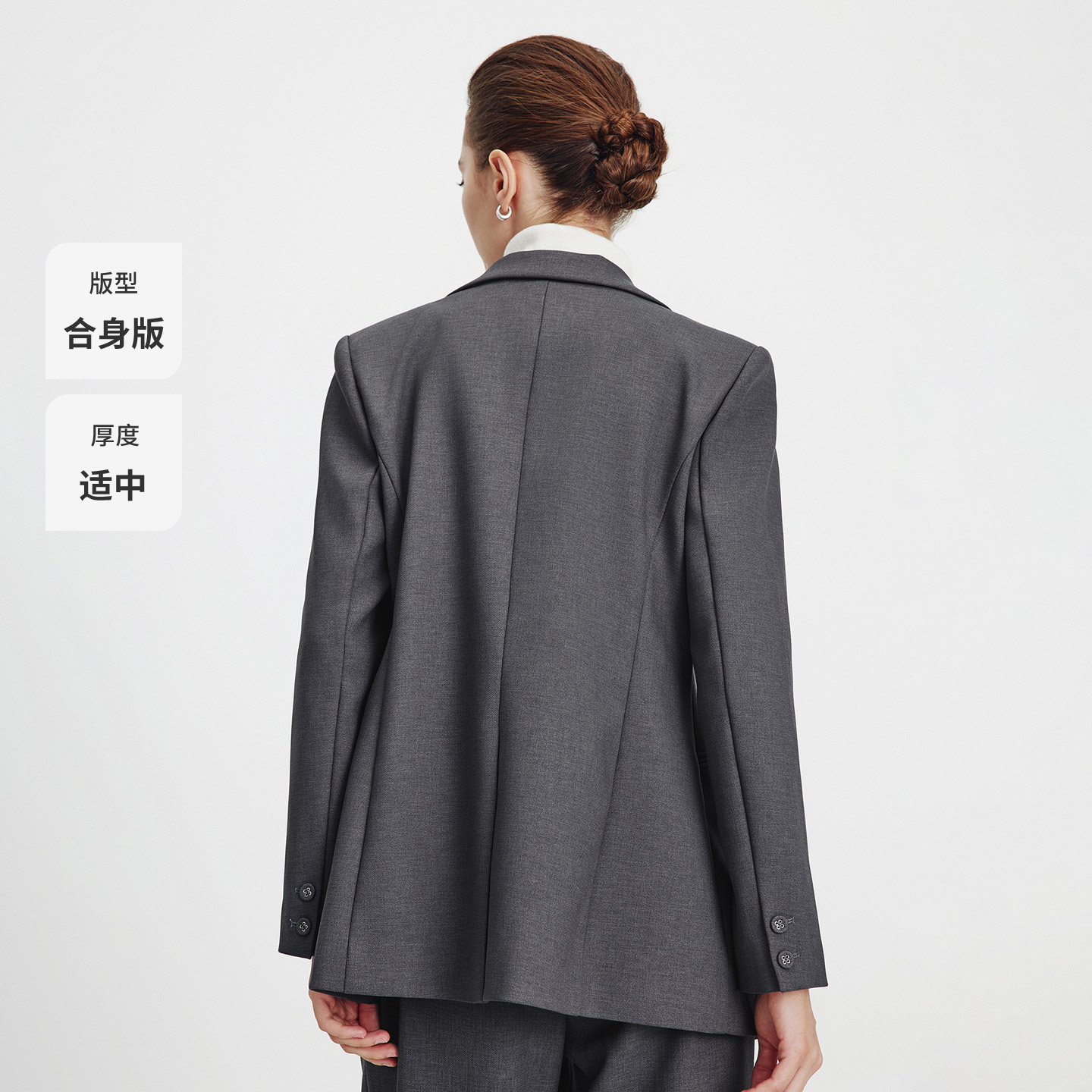 Navigare意大利小帆船灰色无弹西装女春秋新款平驳领时尚便西外套