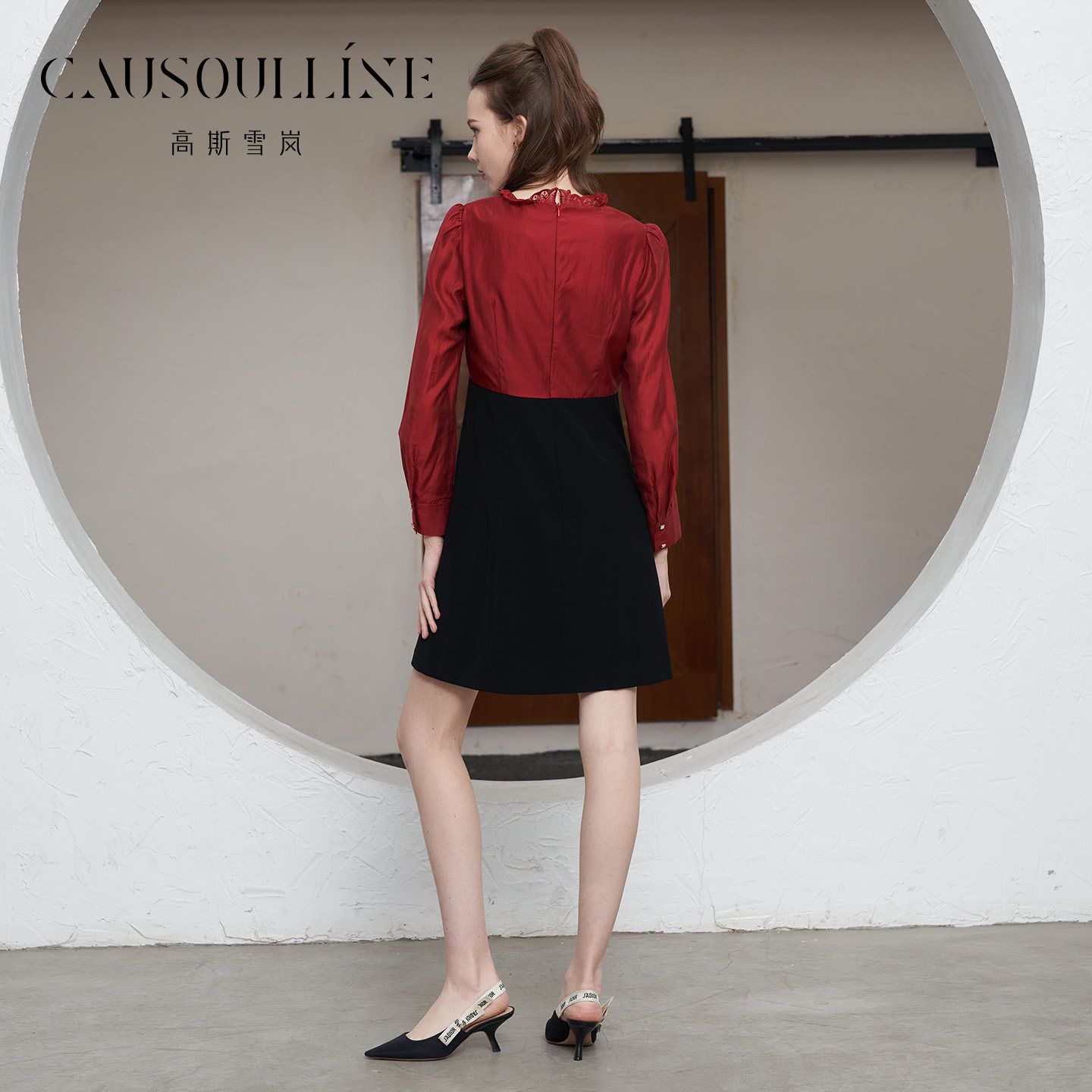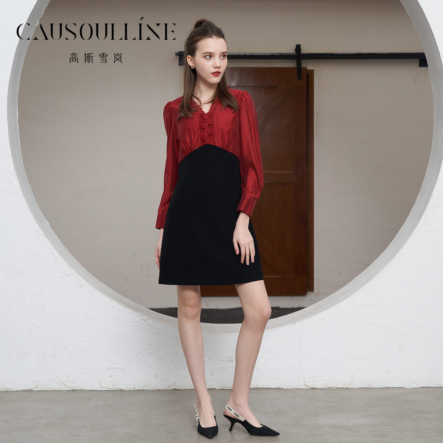 V领蕾丝收腰气质高级感