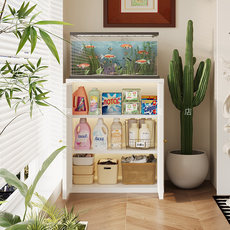 钢制家用复古风阳台矮柜收纳柜防晒家用靠墙落地储物柜杂物置物柜