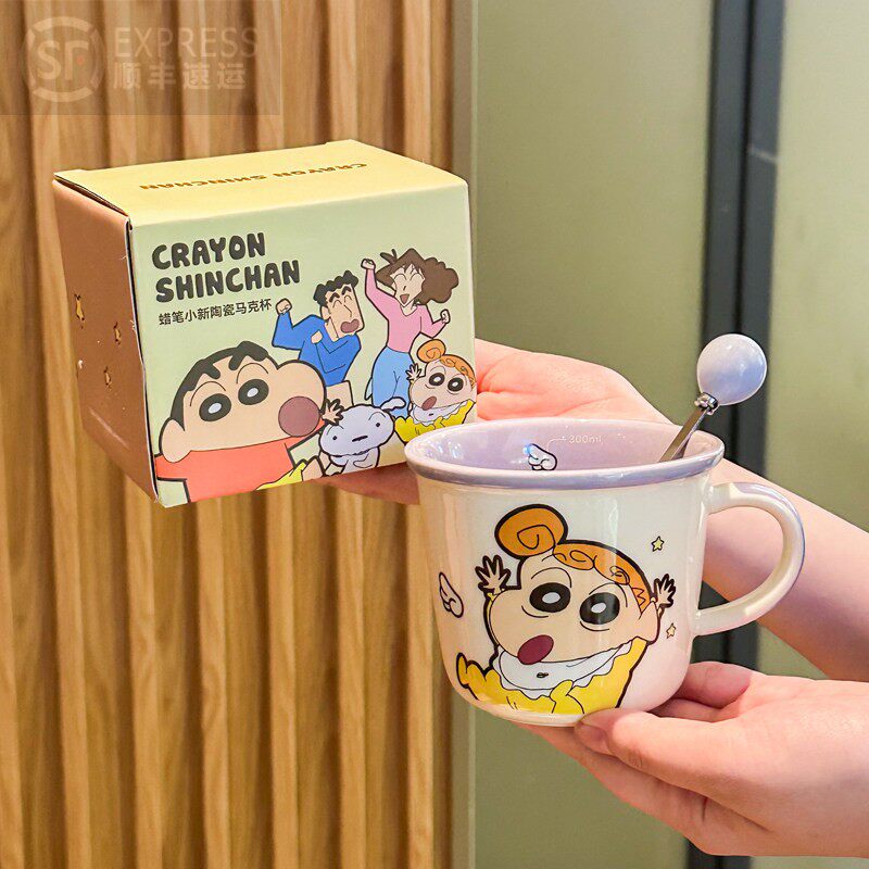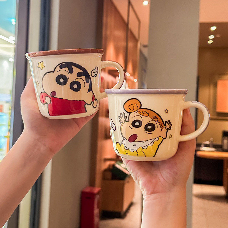 蜡笔小新亲子咖啡杯一家四口一家三口陶瓷马克杯家用早餐喝水杯子