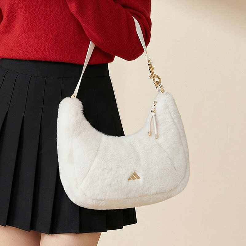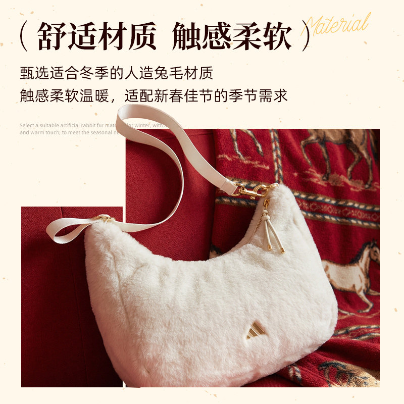 阿迪达斯斜挎包女包2026新年款毛茸运动休闲手拎包单肩包潮KR2567