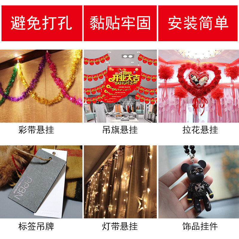 天花板吊顶强力小粘钩悬挂吊旗海报粘钩贴墙无痕挂钩珠帘粘顶粘勾
