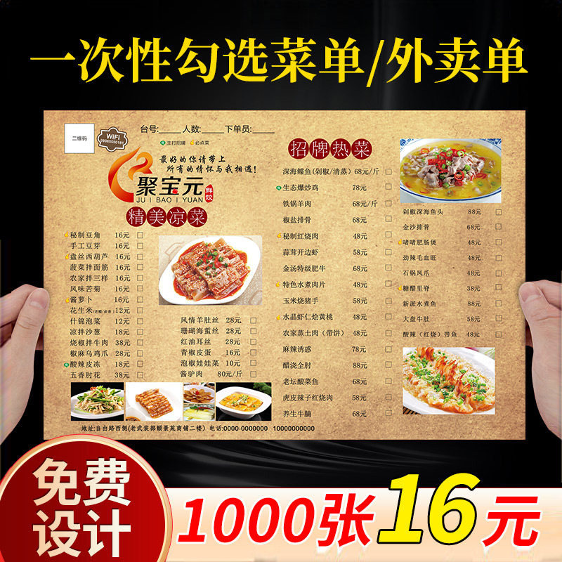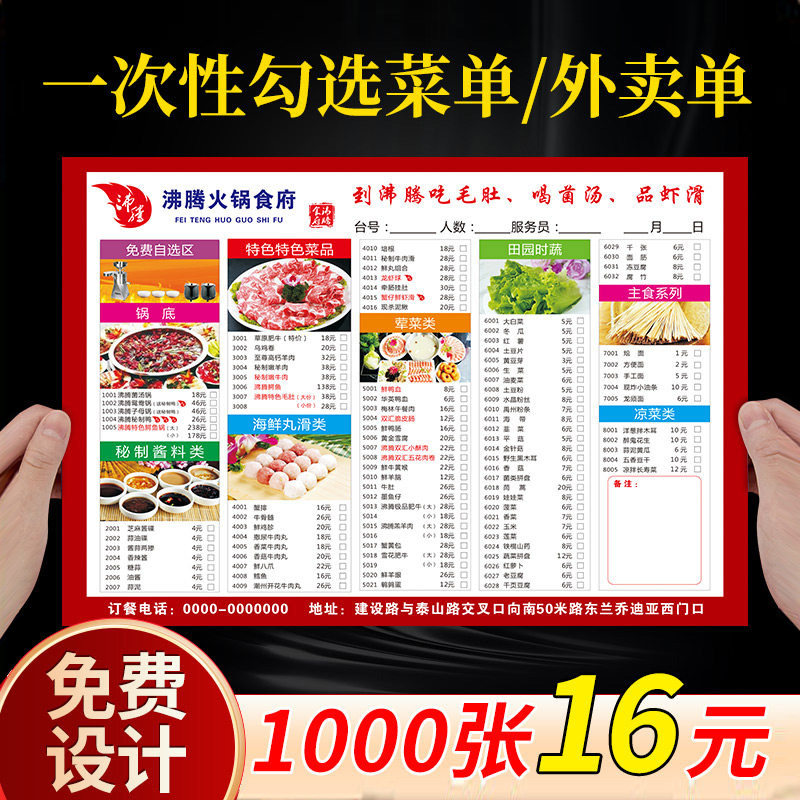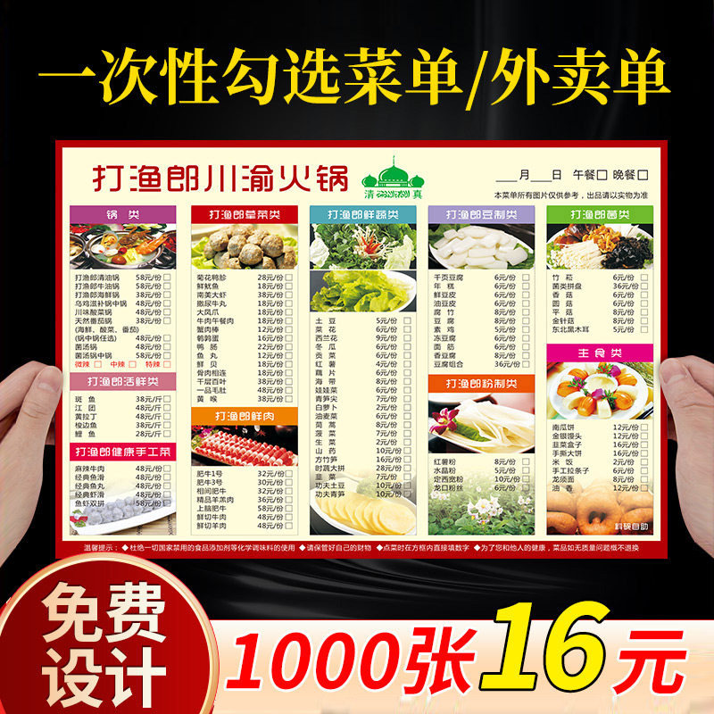 一次性勾选菜单设计制作火锅店饭店汉堡店a3菜单展示牌pvc塑封点菜价格表价目表定制