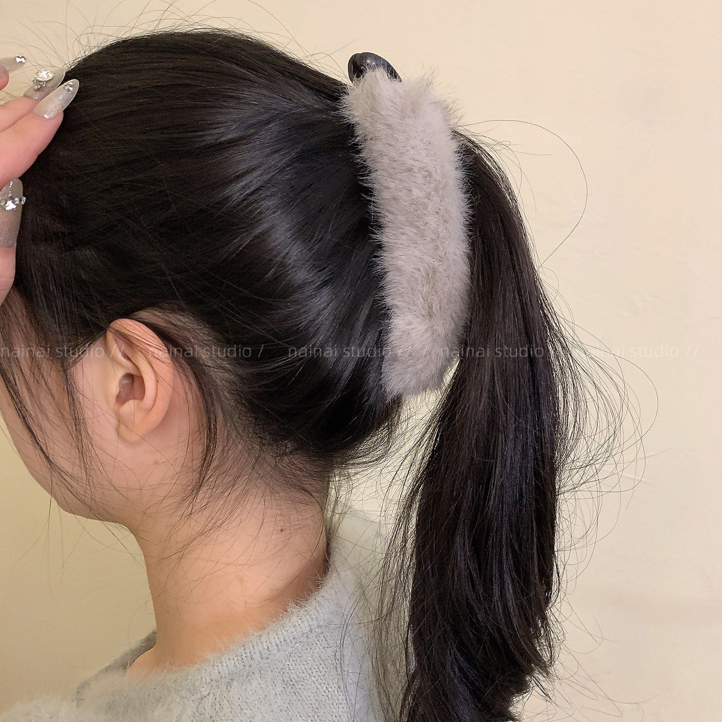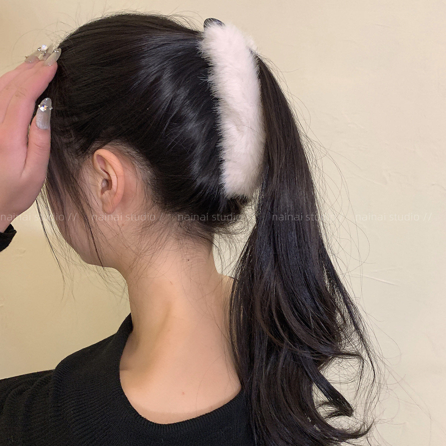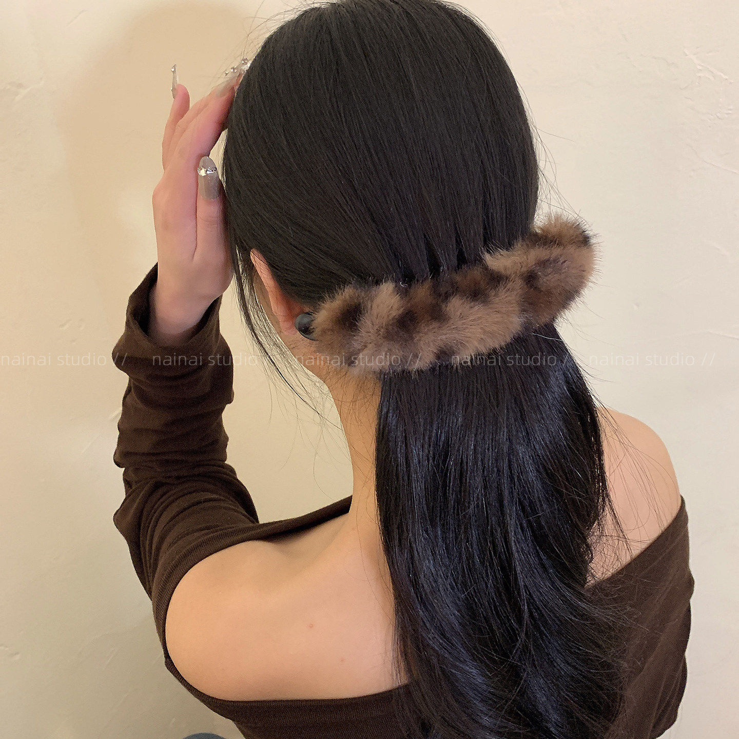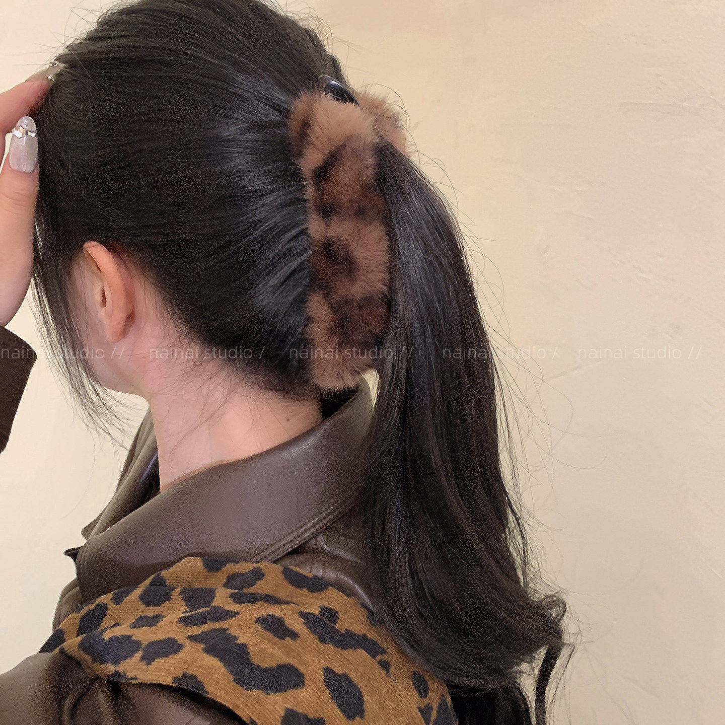豹纹毛绒香蕉夹~仿水貂毛显发量多马尾夹竖夹后脑勺扭扭夹发饰女