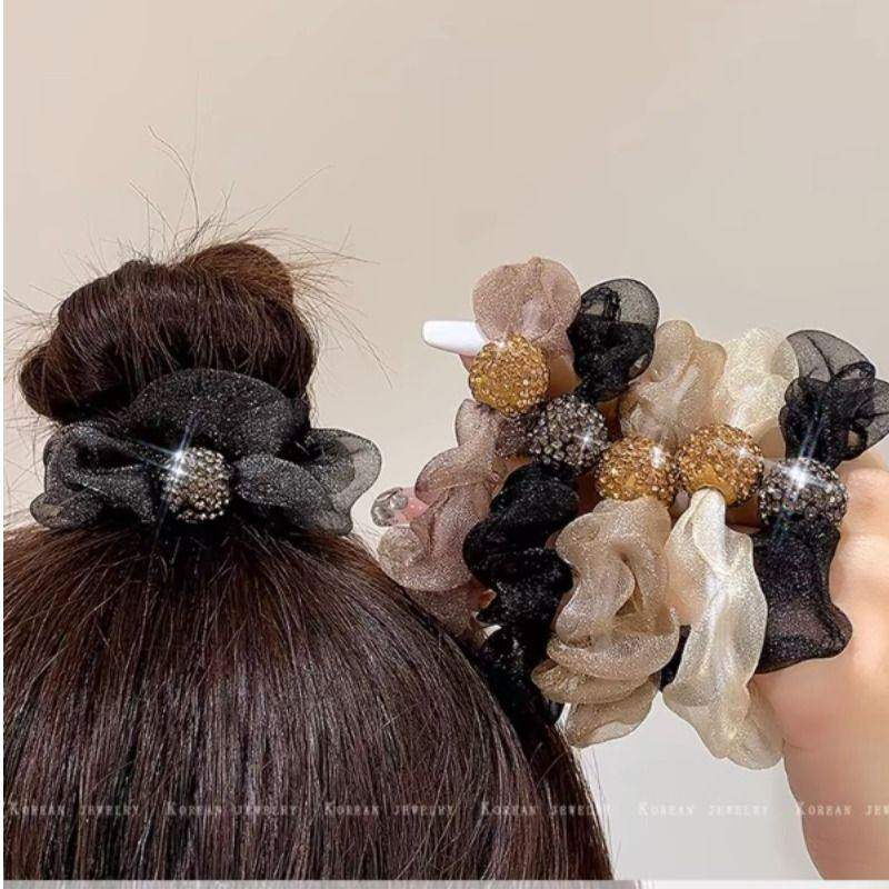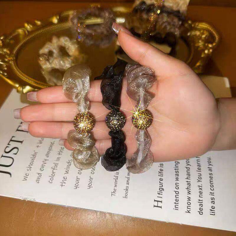 洋气头绳发圈网红头绳扎头发新款发绳欧根纱水钻头绳网纱褶皱发饰