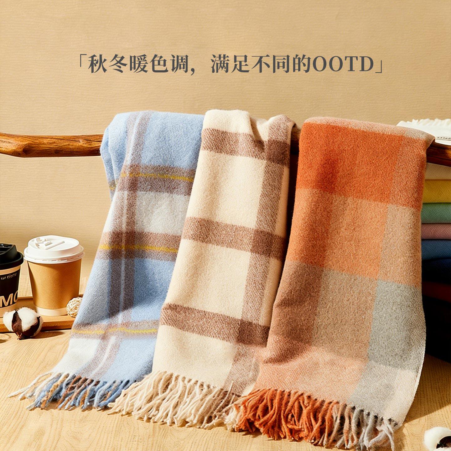三福格子围巾韩系高级感保暖围脖披肩两用旅游外搭女冬季2025新款