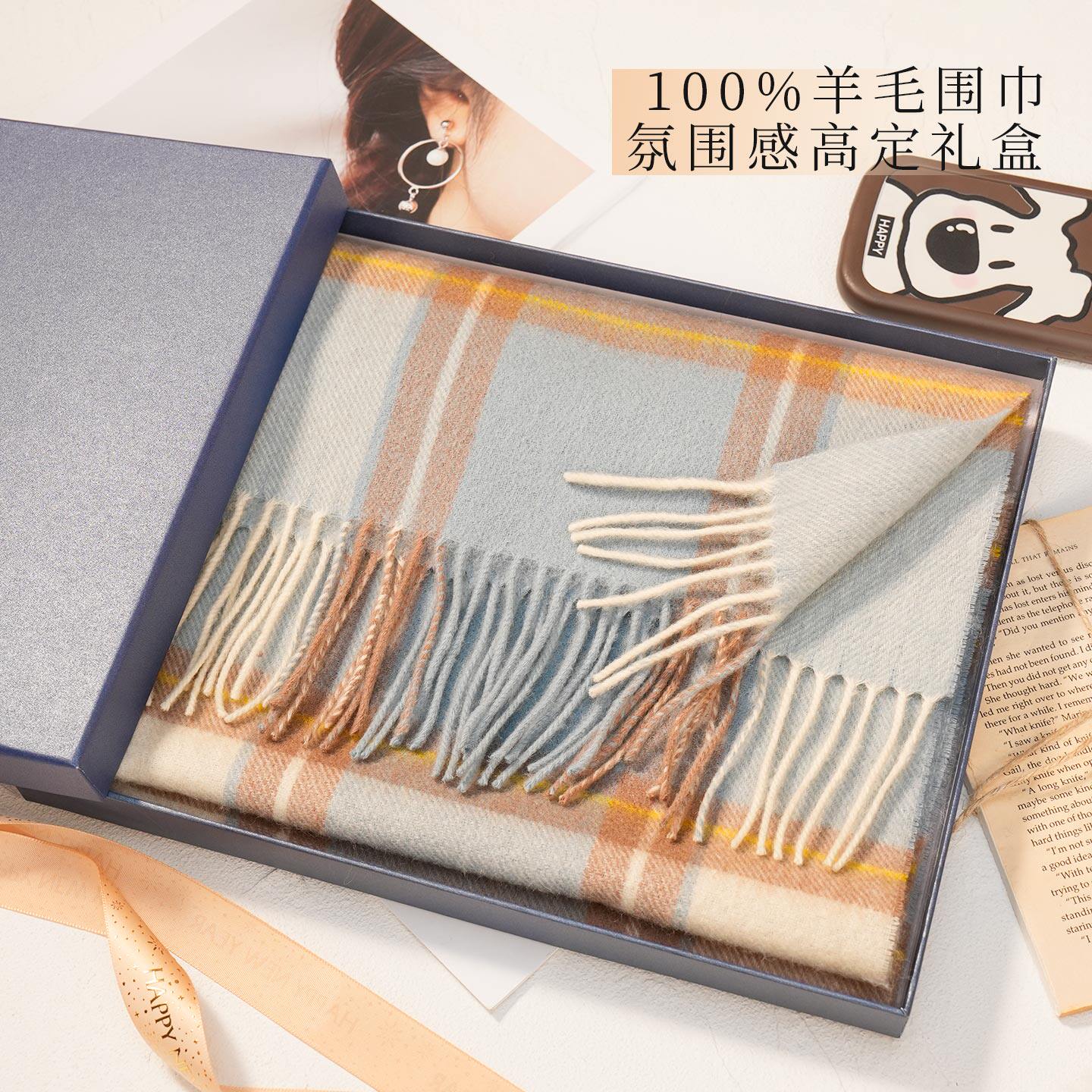 圣诞英国100%羊毛格围巾女2025新款冬季学生保暖情侣围脖生日礼物