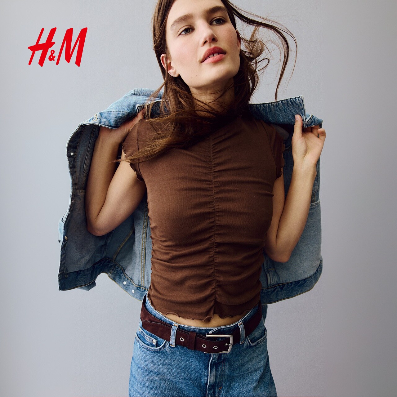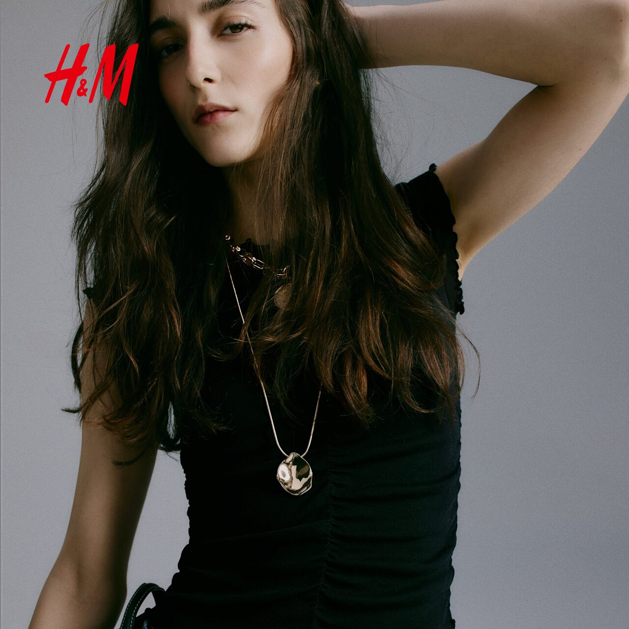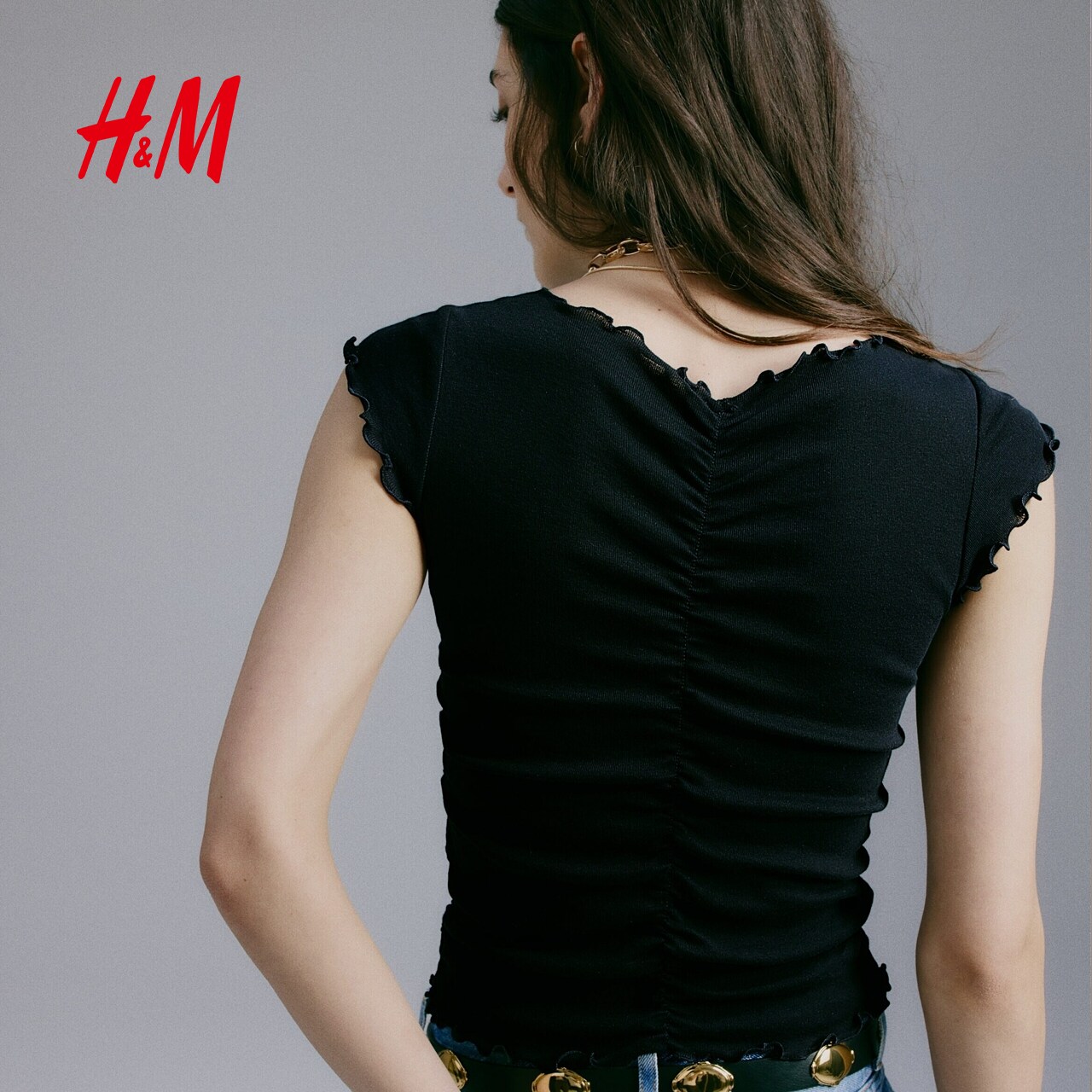 HM女装T恤2026春季新款设计高级感修身垂褶棉质上衣短袖1320809