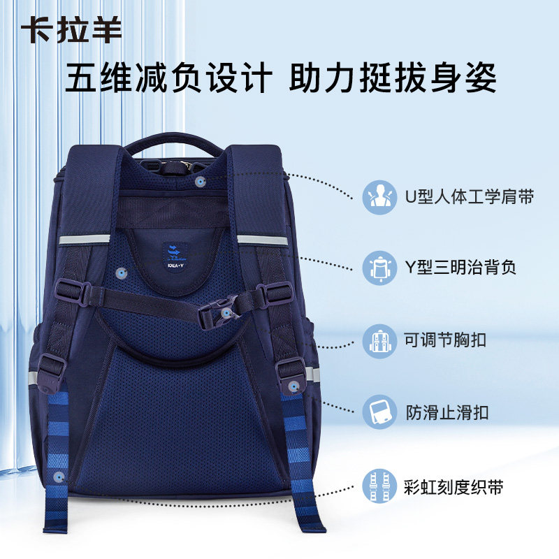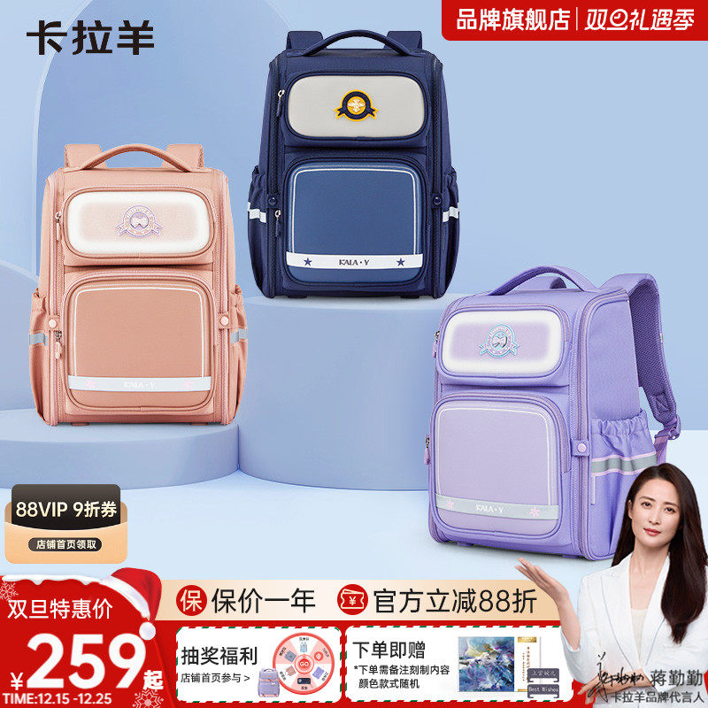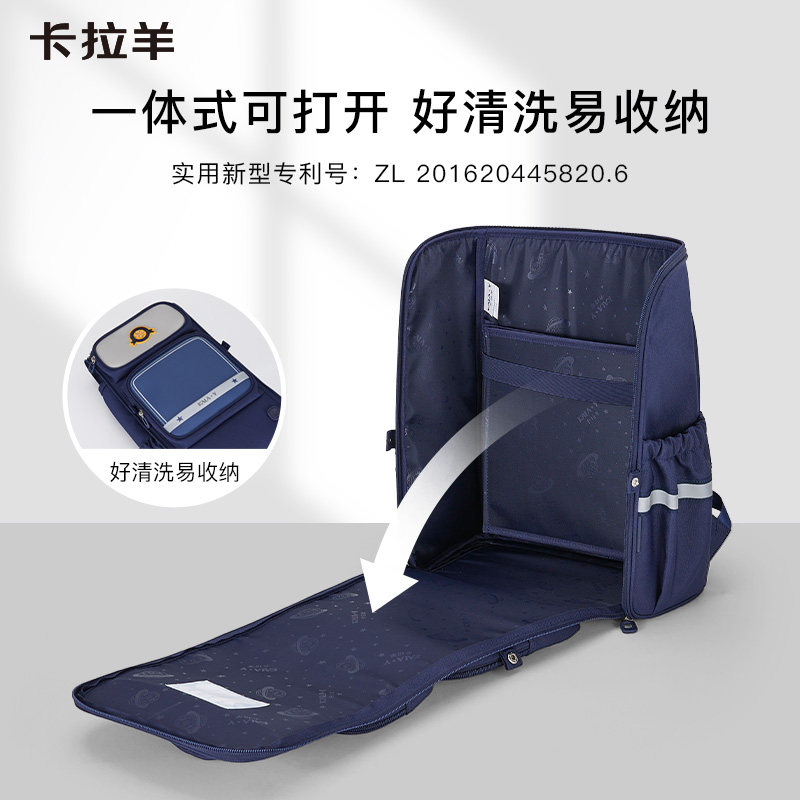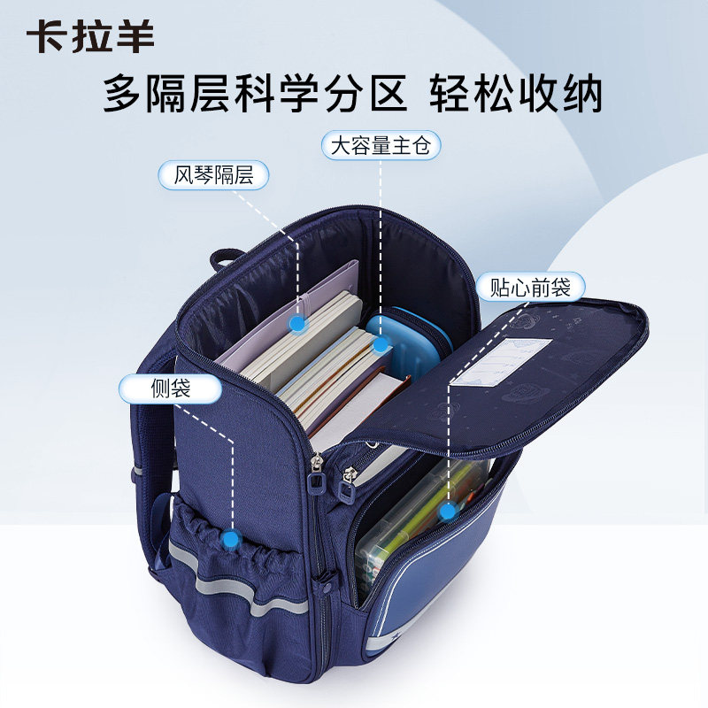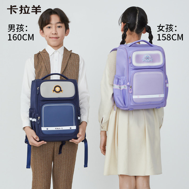 卡拉羊小学生女3-6年级减负防下坠书包男轻便大容量大嘴书包双肩包环游