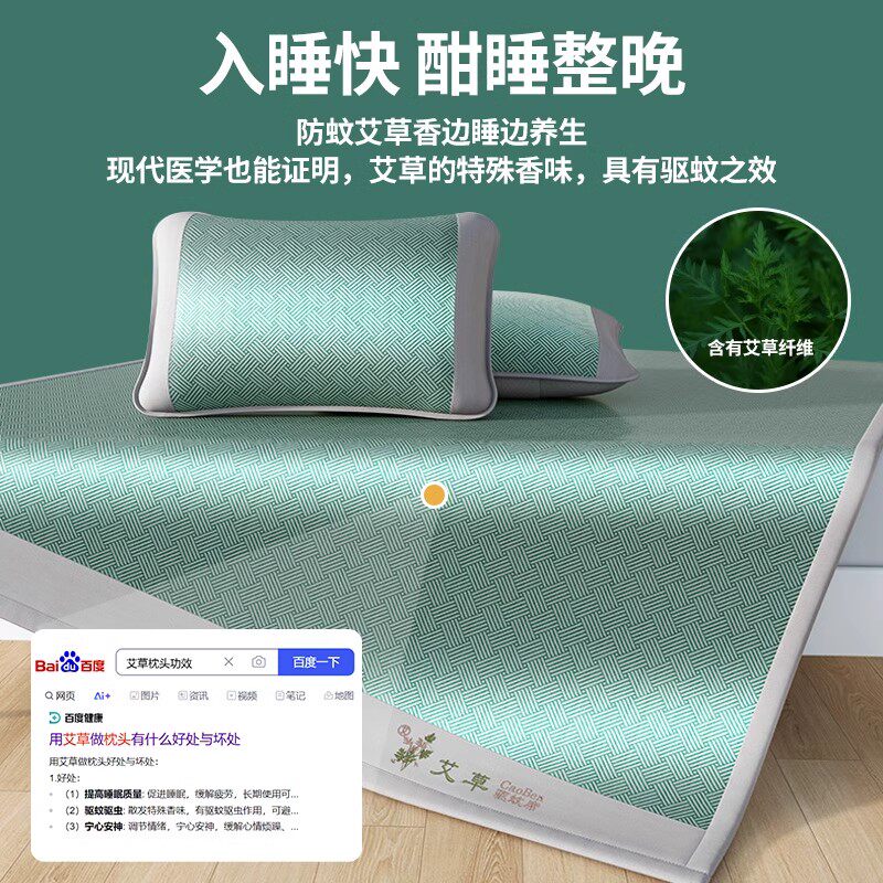 艾草加厚2025新藤席子凉席双人可折叠冰丝席竹席单人学生宿舍夏天
