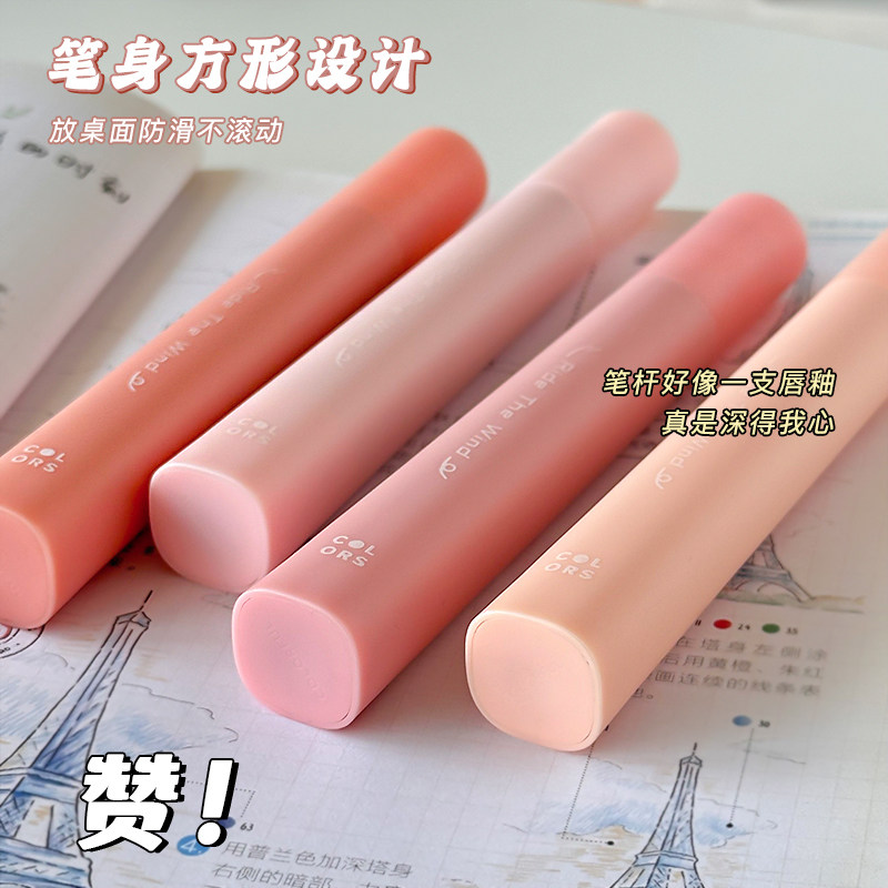点石三角杆荧光笔12色记号笔简约学生划重点标记笔套装柔色手账笔