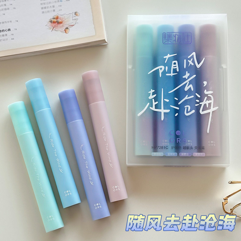 淡色护眼重点记号笔大容量 莫兰迪彩色荧光标记笔浅色粗头套装清