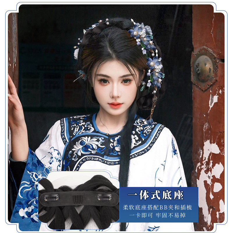 古风汉服假发髻盘发一体式发包古装明制唐风懒人造型垫发全套头饰