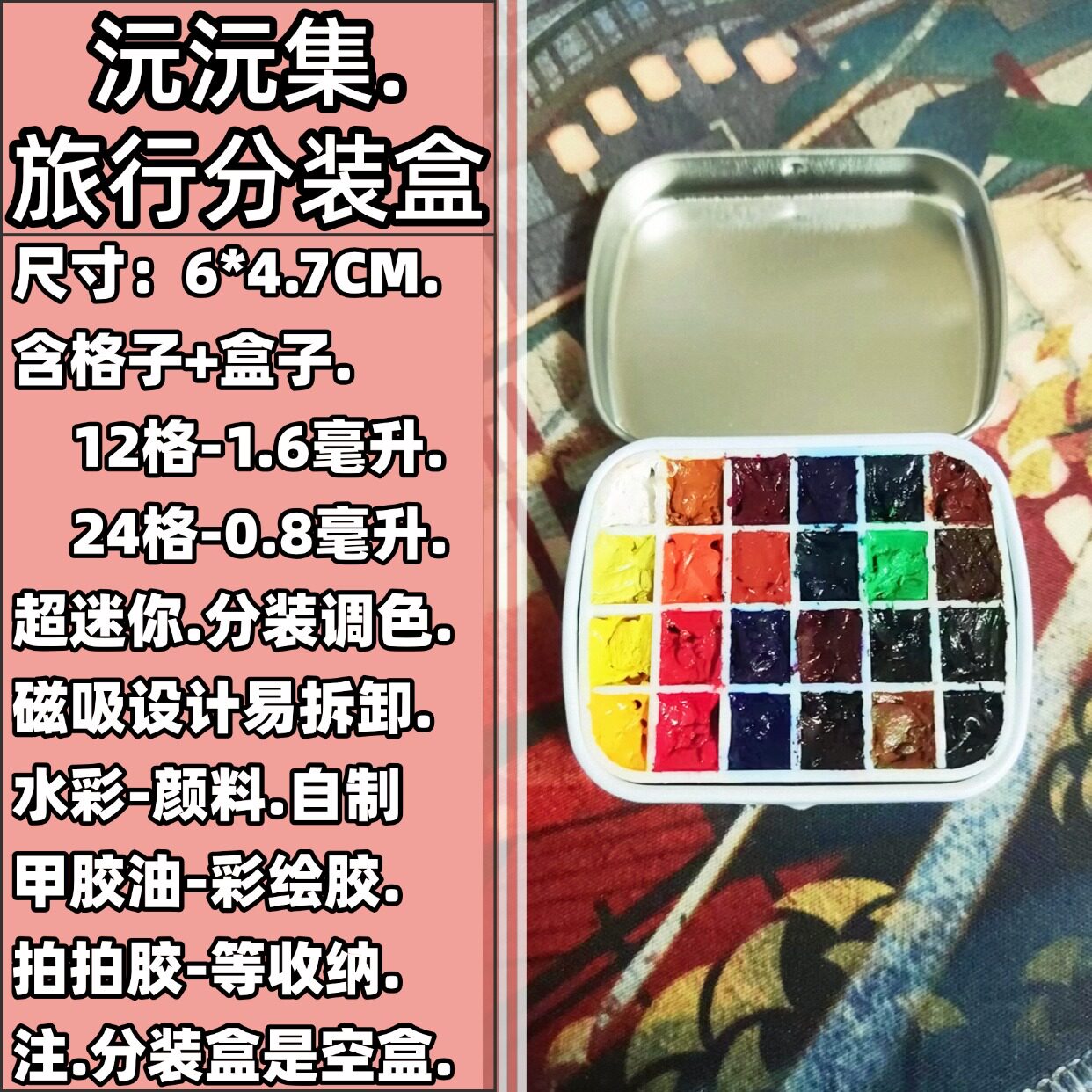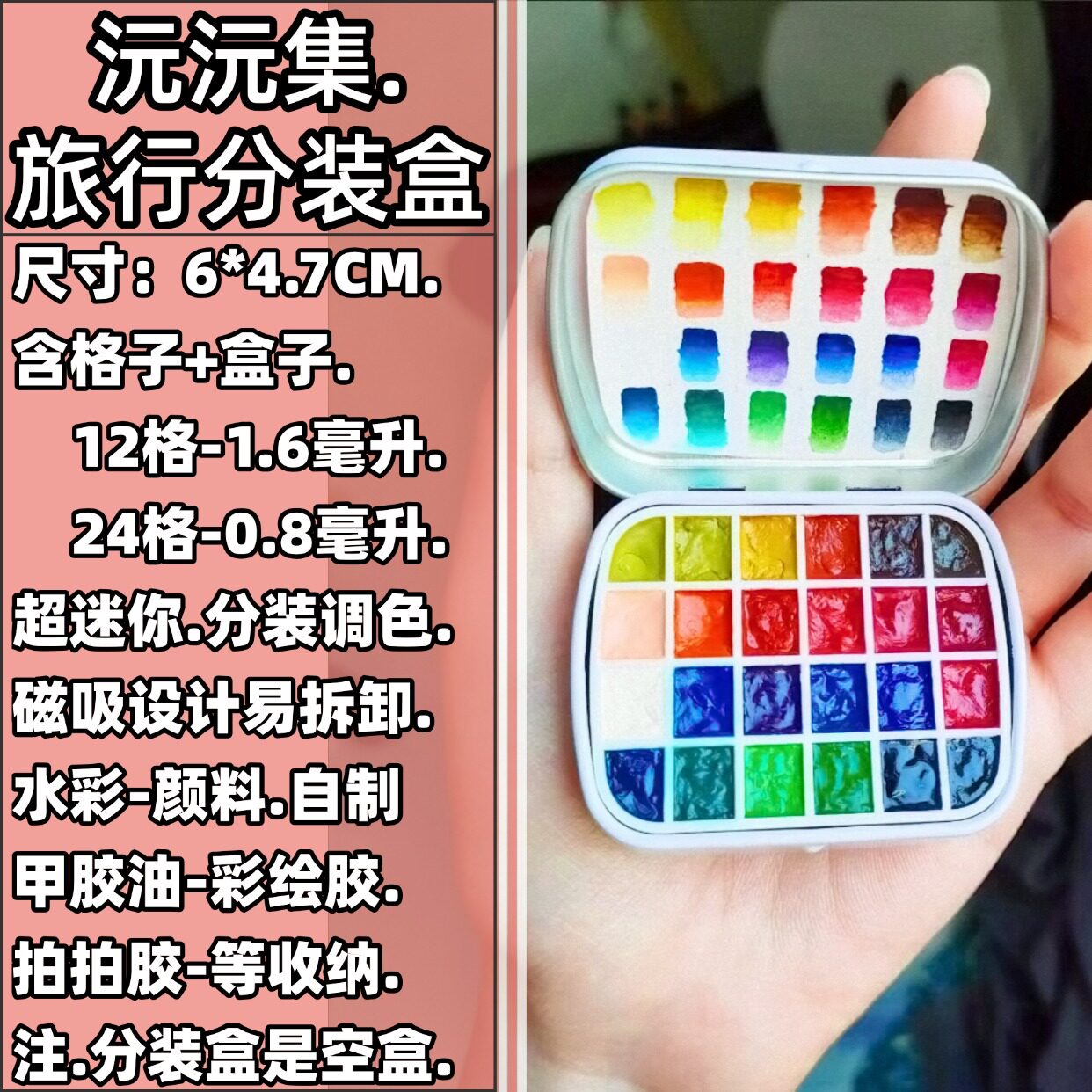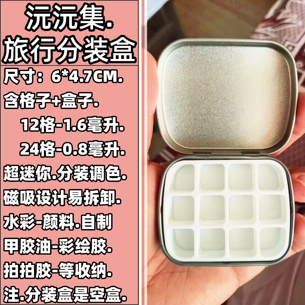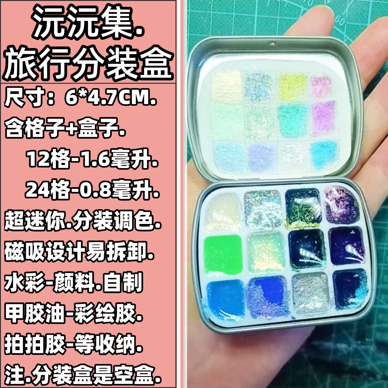 颜料分装迷你铁盒12格24色DIY调色盒便携美甲饰品收纳分装收纳盒