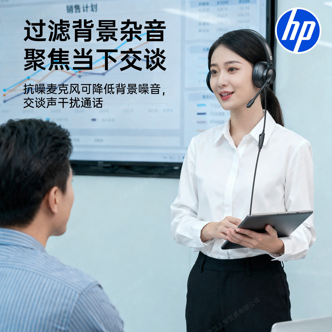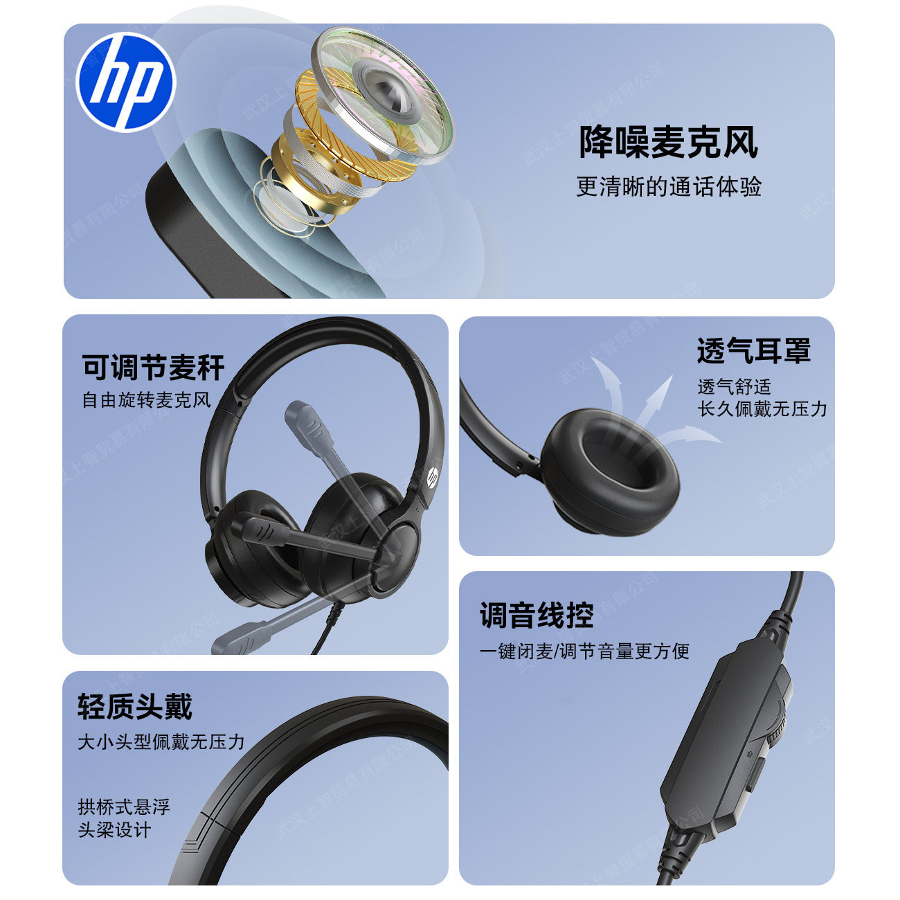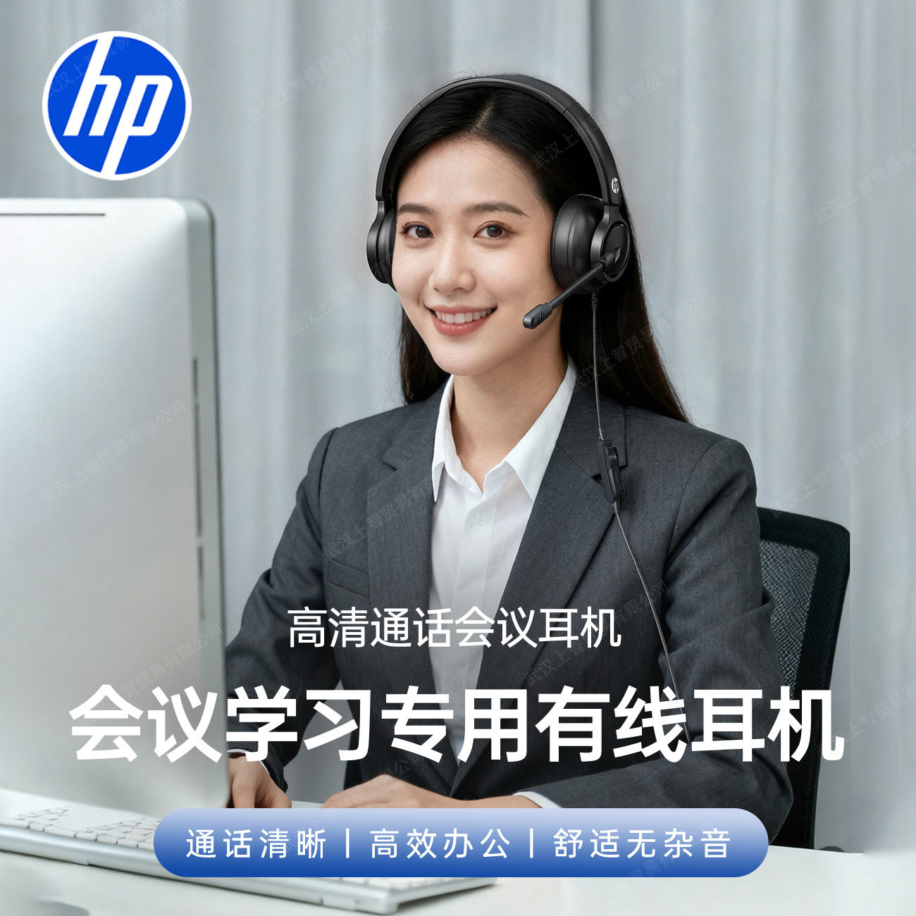 HP惠普头戴式有线话务员客服专用电脑耳机带麦克风降噪耳麦话筒