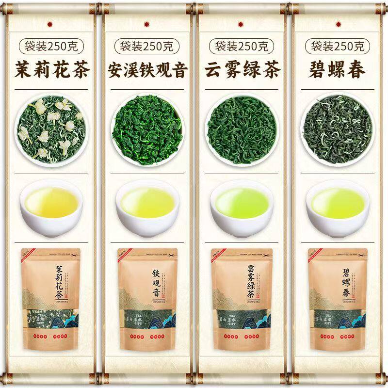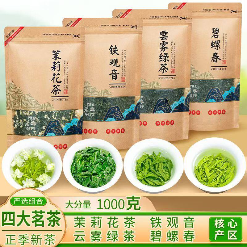 【四大茗茶】安溪铁观音碧螺春茉莉花茶云雾绿茶大袋装组合款500g