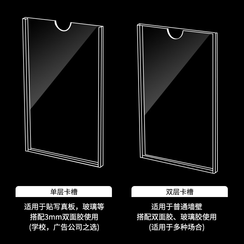 亚克力卡槽公示栏A4透明插纸插槽A3插盒56寸照片展示牌双层玻璃