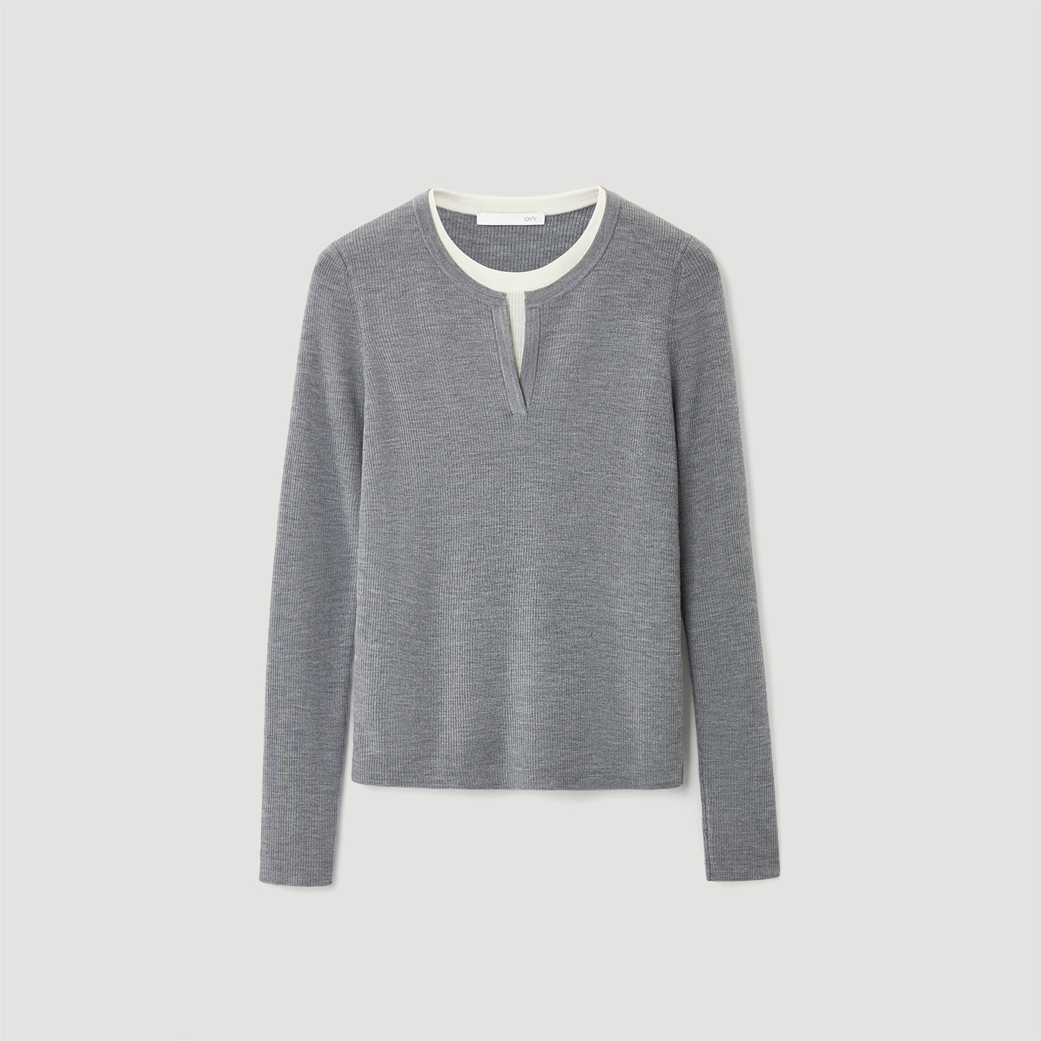 OVV2025秋冬新款女装经典撞色圆领舒适羊毛长袖针织衫