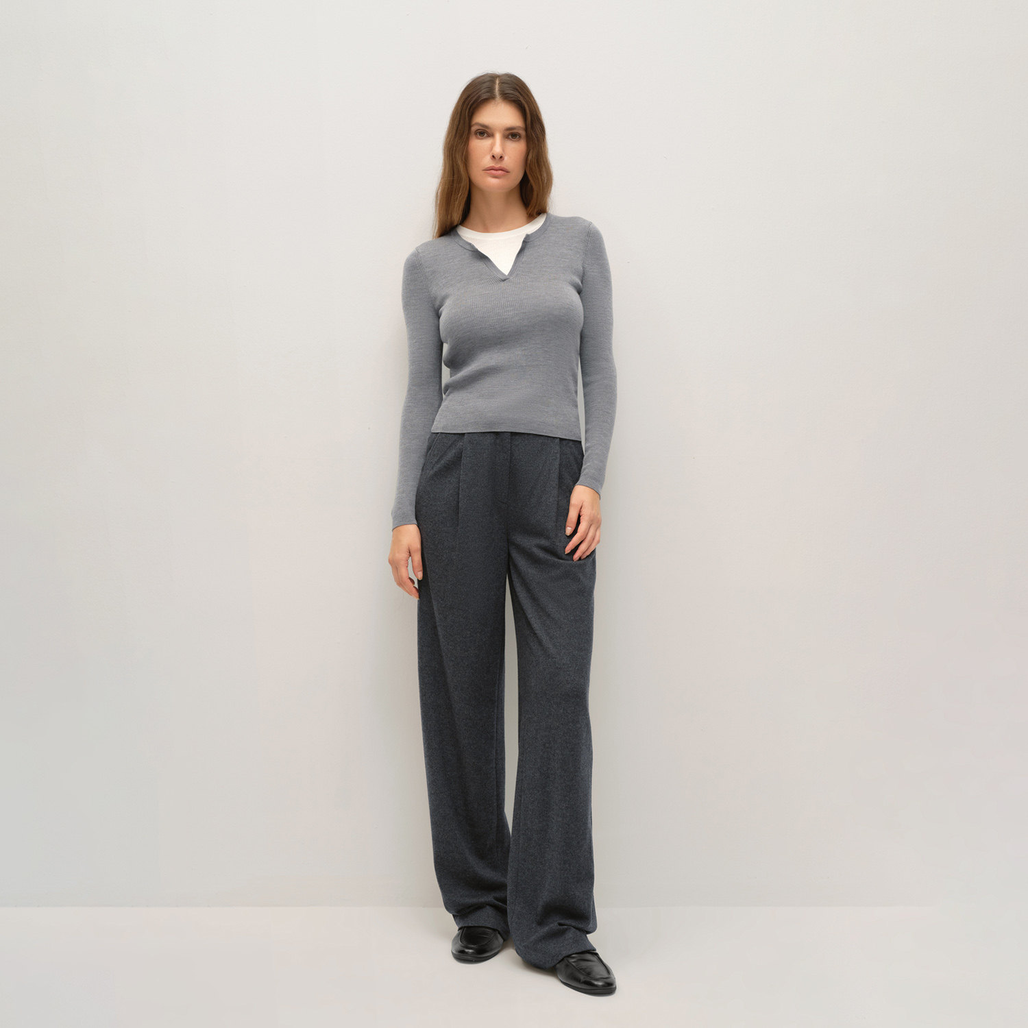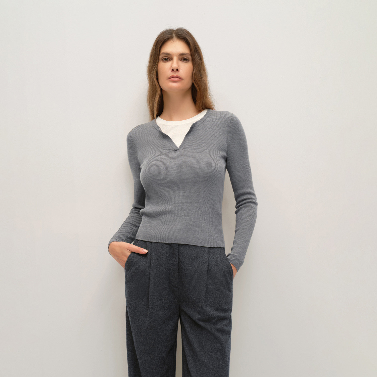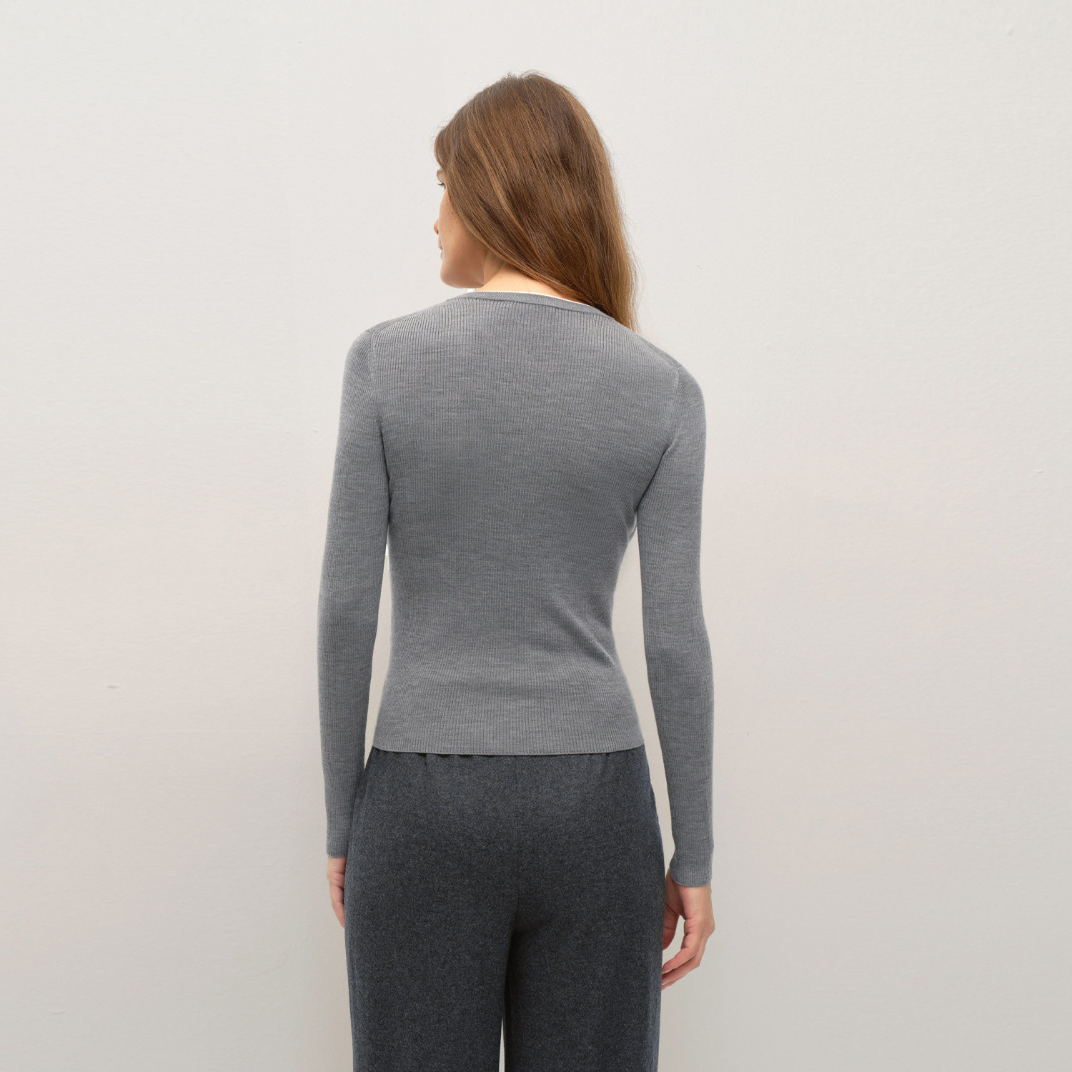 撞色领口 羊毛面料 长袖设计