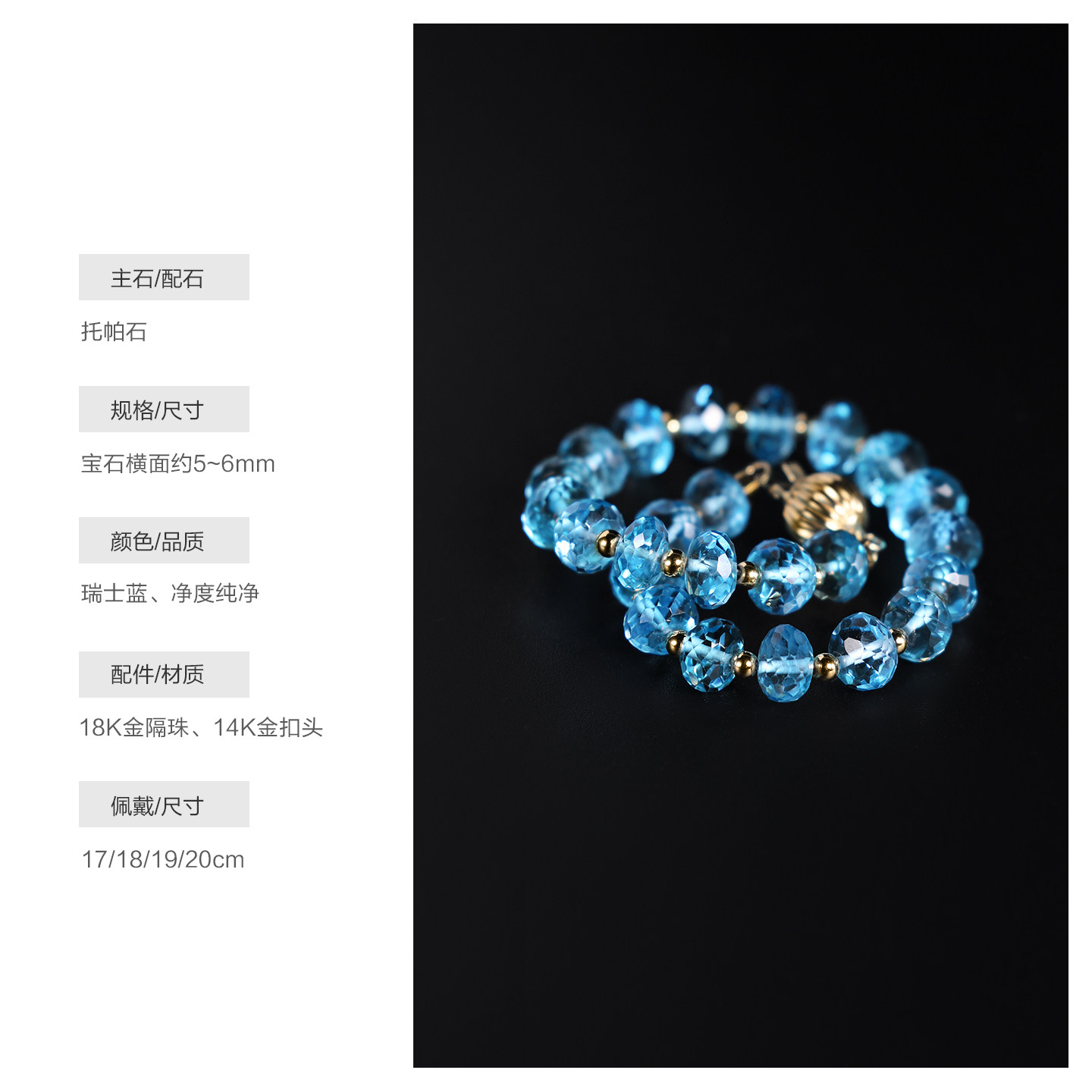 若华珠宝冰灵=瑞士蓝托帕石手链女18K金彩宝手串小众设计手饰礼物