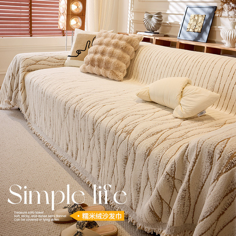 绒沙发盖布巾全盖客厅防猫抓沙发套罩2025新款防滑毯子简约氛围