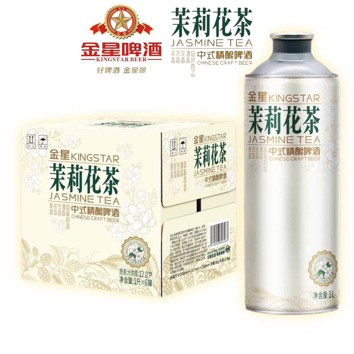 金星茉莉花茶毛尖碧螺春普洱1L*2罐茶啤组合啤酒精酿整箱中式