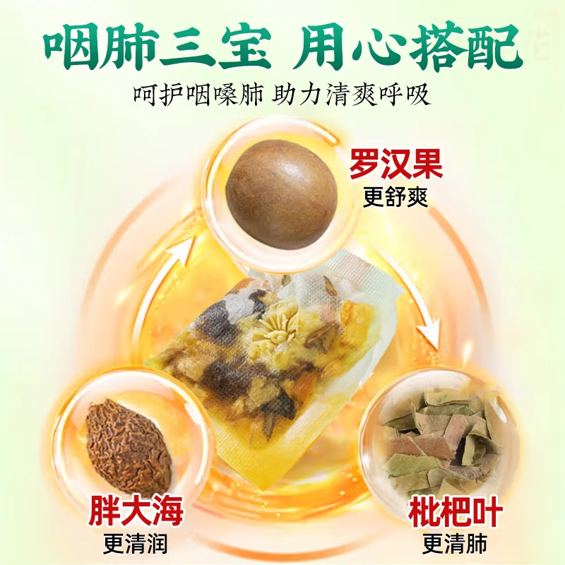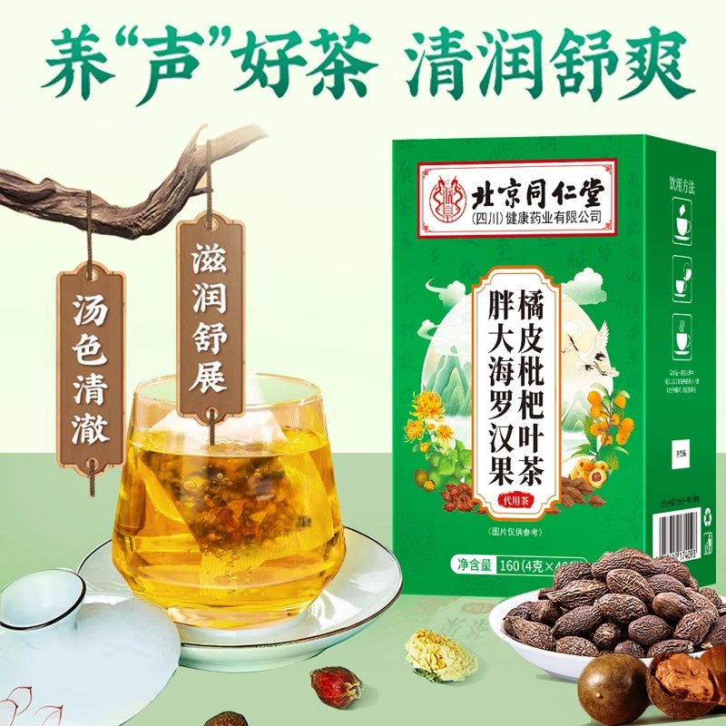 北京同仁堂胖大海罗汉果茶枇杷叶泡水喝止咳化痰护嗓养生茶包清肺