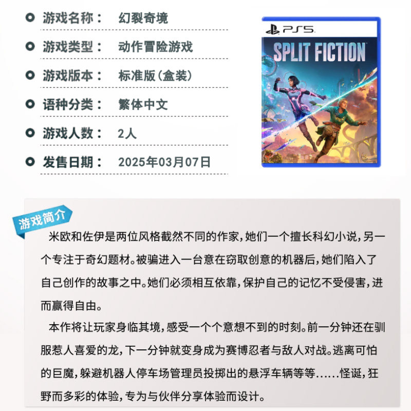 现货索尼PS5游戏光碟 幻裂奇境 双影奇境 双人成行2续作 国行中文