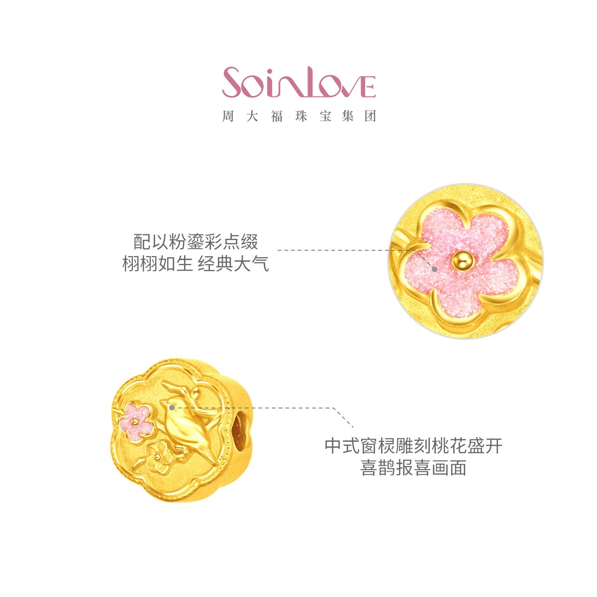 周大福SOINLOVE蜜粉金十里红妆灵鹊报喜黄金足金转运珠圣诞礼物