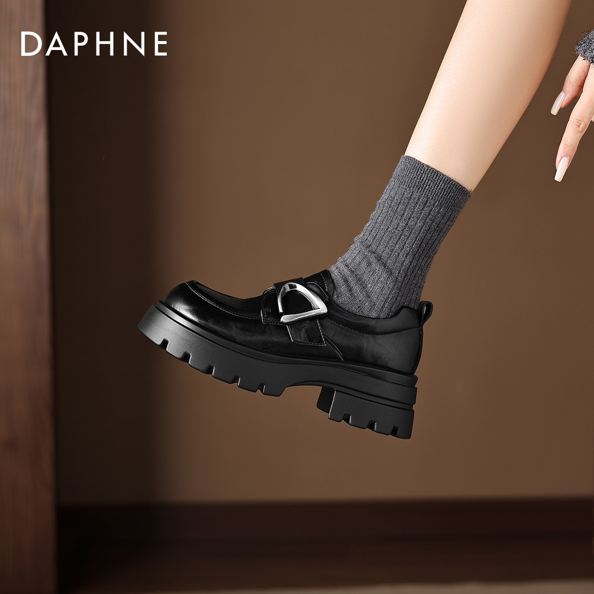 达芙妮厚底乐福鞋女2026新款春季英伦风松糕小皮鞋通勤一脚蹬单鞋