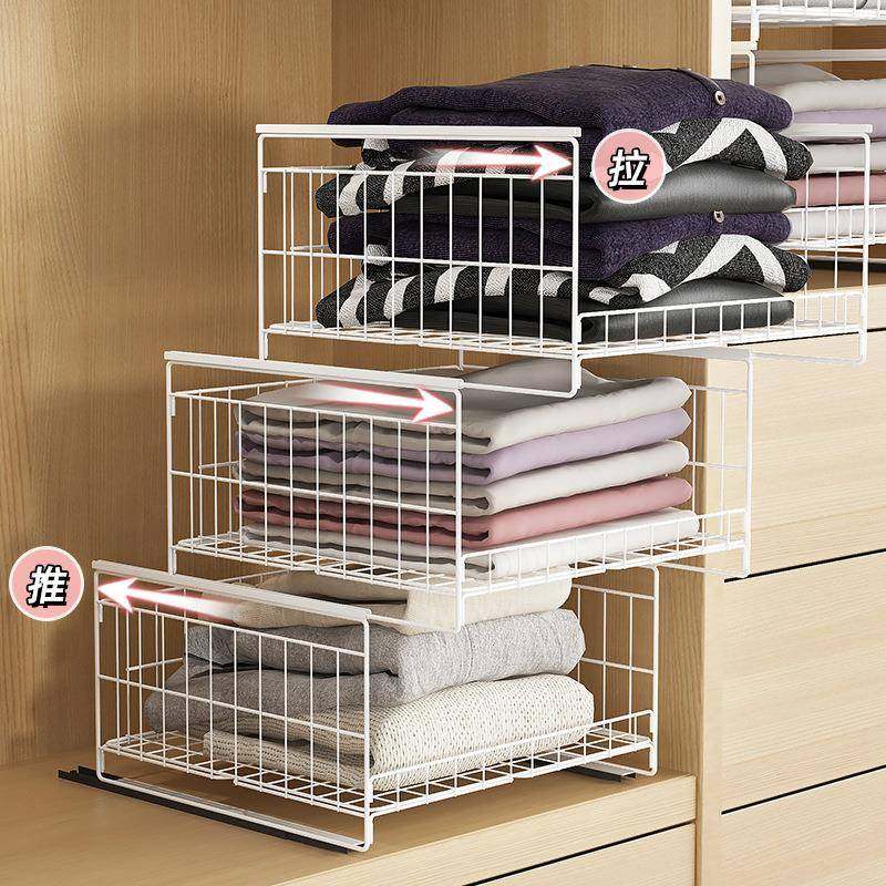 衣柜抽拉篮收纳分层滑轨隔板卧室衣橱改造内置隔层置物架子抽屉式